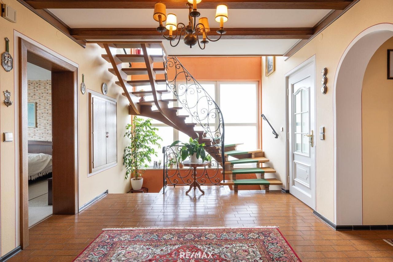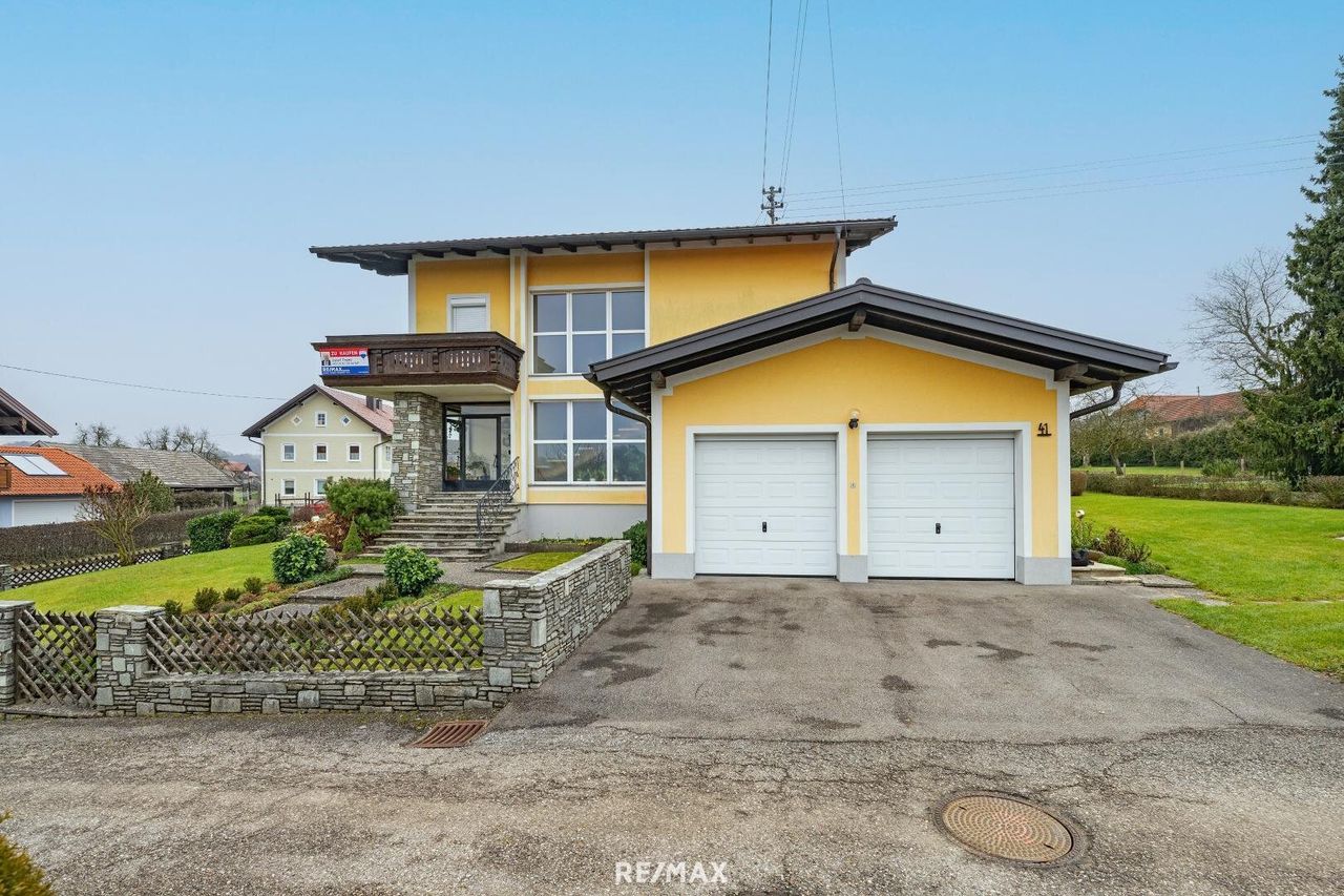 Stilvolles Ein- Zweifamilienhaus mit Doppelgarage und großen Garten. Dieses gepflegte Ein- Zweifamilienhaus aus den 1970er-Jahren bietet ca. 205 m² Wohnfläche auf 9 Zimmern – ideal für Familien, Mehrgenerationenwohnen oder Wohnen & Arbeiten unter einem Dach. Das sonnige Grundstück mit ca. 1.307 m² überzeugt mit Terrasse, neuer Gartenhütte und viel Platz für Freizeit und Erholung. Ausstattung & Räume: • Erdgeschoss: zentraler Eingangsbereich, Küche, Esszimmer mit Kachelofen, Wohnzimmer mit Terrassenzugang, 2 Schlafzimmer, Bad & WC • Obergeschoss: Küche, 5 Zimmer, 2 Balkone, Bad mit WC – auch als separate Wohneinheit nutzbar • Vollunterkellerung mit Heizraum, Lager- und Hobbyflächen • Doppelgarage direkt am...