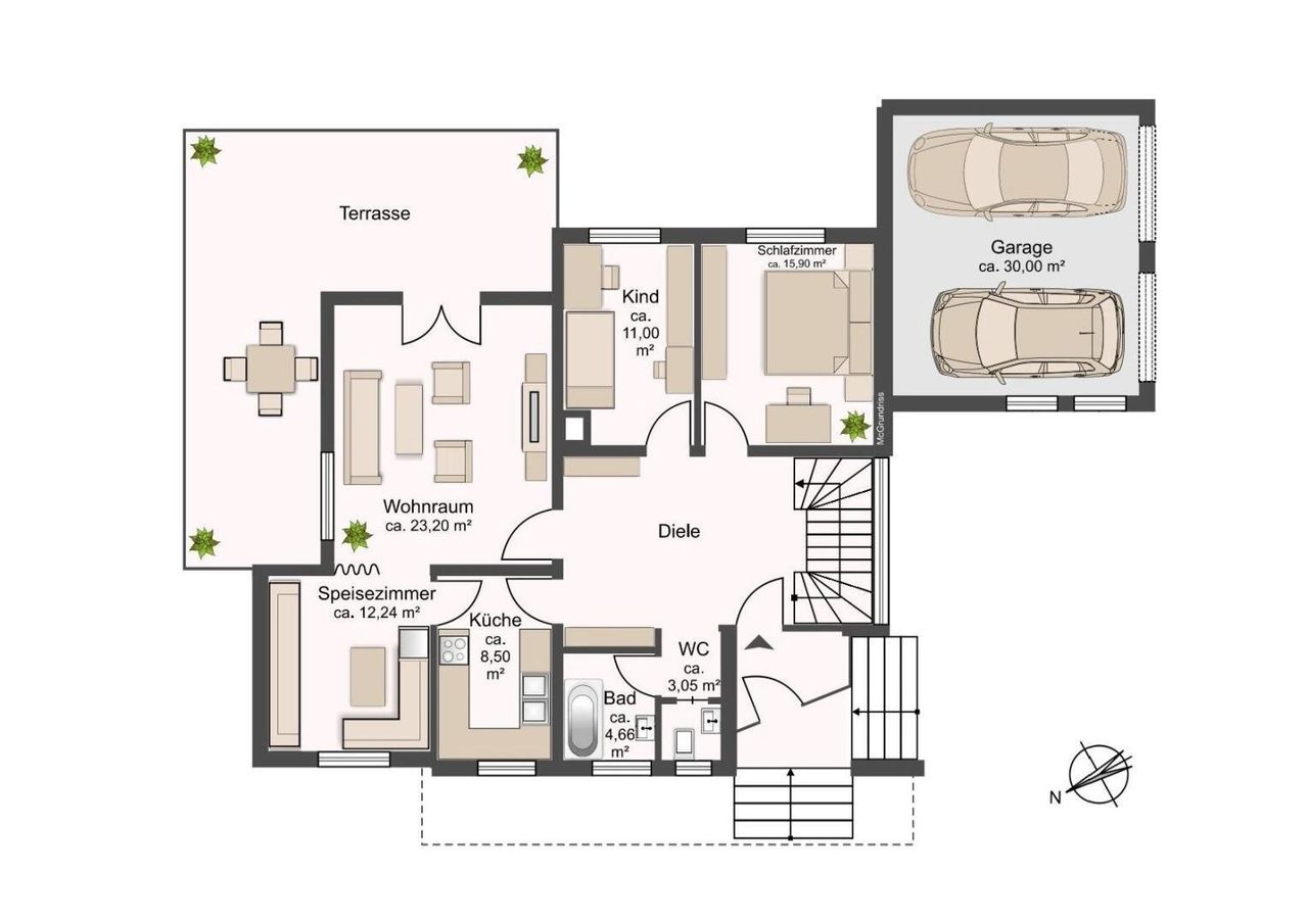 • Doppelgarage direkt am Haus