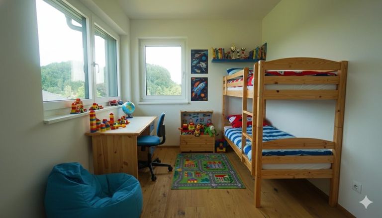 Drei helle Schlafzimmer, die Flexibilität für Eltern, Kinder oder Home-Office bieten.