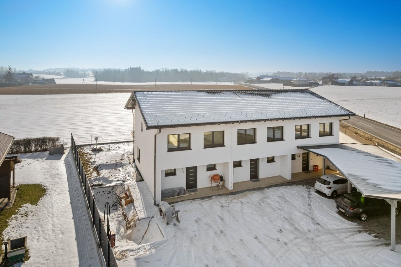 Dieses moderne Reiheneckhaus in attraktiver Lage von Neukirchen an der Enknach vereint energieeffizientes Wohnen mit hochwertiger Ausstattung und durchdachter Raumaufteilung.