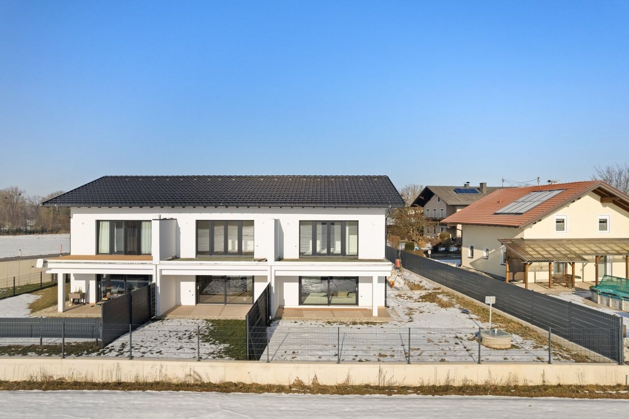 Besonderes Augenmerk wurde auf Wohnkomfort und Funktionalität gelegt: Alle Fenster sind mit Rollläden sowie integrierten Insektenschutzgittern ausgestattet, um Ihnen zu jeder Jahreszeit höchsten Komfort zu bieten. Die 3-fach verglasten Fenster gewährleisten optimale Energieeffizienz und ein angenehmes Wohnklima.
