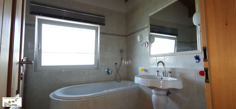 Die hochwertige Ausstattung des Hauses wird Sie begeistern: Fliesen und Parkett sorgen für ein stilvolles Ambiente, während die Zentralheizung und der Kamin für wohlige Wärme an kalten Tagen garantieren. In der modernen Einbauküche zaubern Sie mit Leichtigkeit köstliche Gerichte für Ihre Liebsten. Die beiden Bäder, eines davon mit Fenster, bieten zusätzlichen Komfort und Privatsphäre, während die drei WCs den Alltag mühelos gestalten.