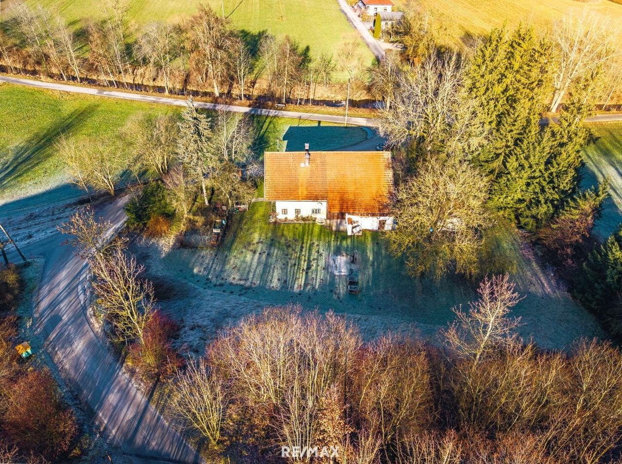 Auf einer Gesamtgrundfläche von ca. 2.537 m² vereint diese Liegenschaft eine rund 1.006 m² große Bauparzelle mit sanierungsbedürftigem Altbestand und weitläufigem Grünland. Ein Ort mit reichlich Raum für Wohnen, Garten, Hobbys – und für all Ihre Ideen.
