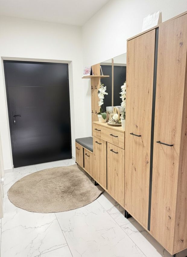 Die einladende Terrasse lädt zum Entspannen ein und wird schnell zu Ihrem persönlichen Rückzugsort – ob beim Frühstück in der Morgensonne oder bei gemütlichen Abenden im Freien.