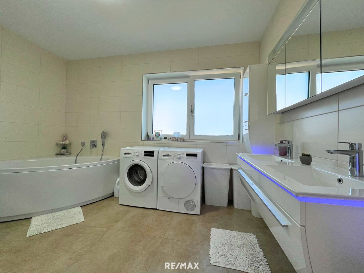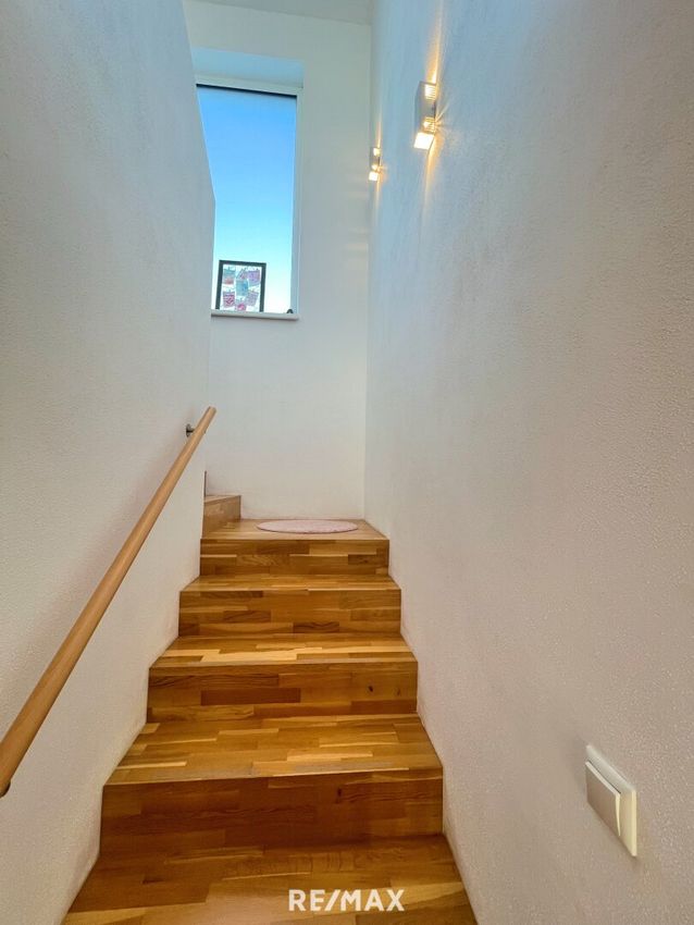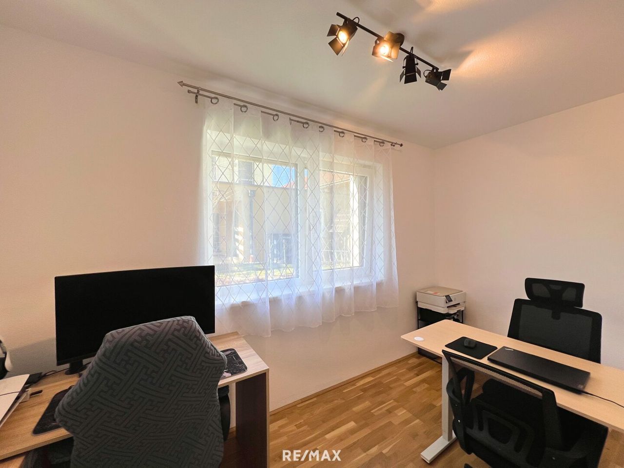 Im Erdgeschoss befinden sich ein einladender Wohn- und Essbereich mit ca. 32,81 m², eine moderne, hochwertige Einbauküche mit ca. 12,60 m², eine praktische Speis, ein Abstellraum, ein WC sowie ein Büro mit 7,7 m², ideal für Homeoffice oder Gäste.