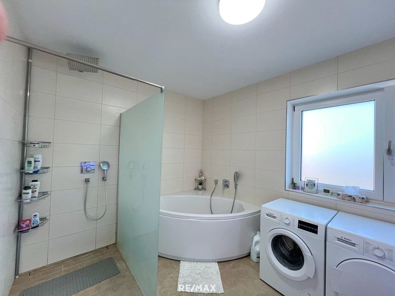 Eine Terrasse mit ca. 27,50 m² lädt zum Entspannen im Freien ein und bietet ausreichend Platz für gemütliche Stunden mit Familie und Freunden. Ergänzt wird das Angebot durch eine geräumige Garage mit 38,60 m², die sowohl Fahrzeug als auch Stauraum komfortabel unterbringt.