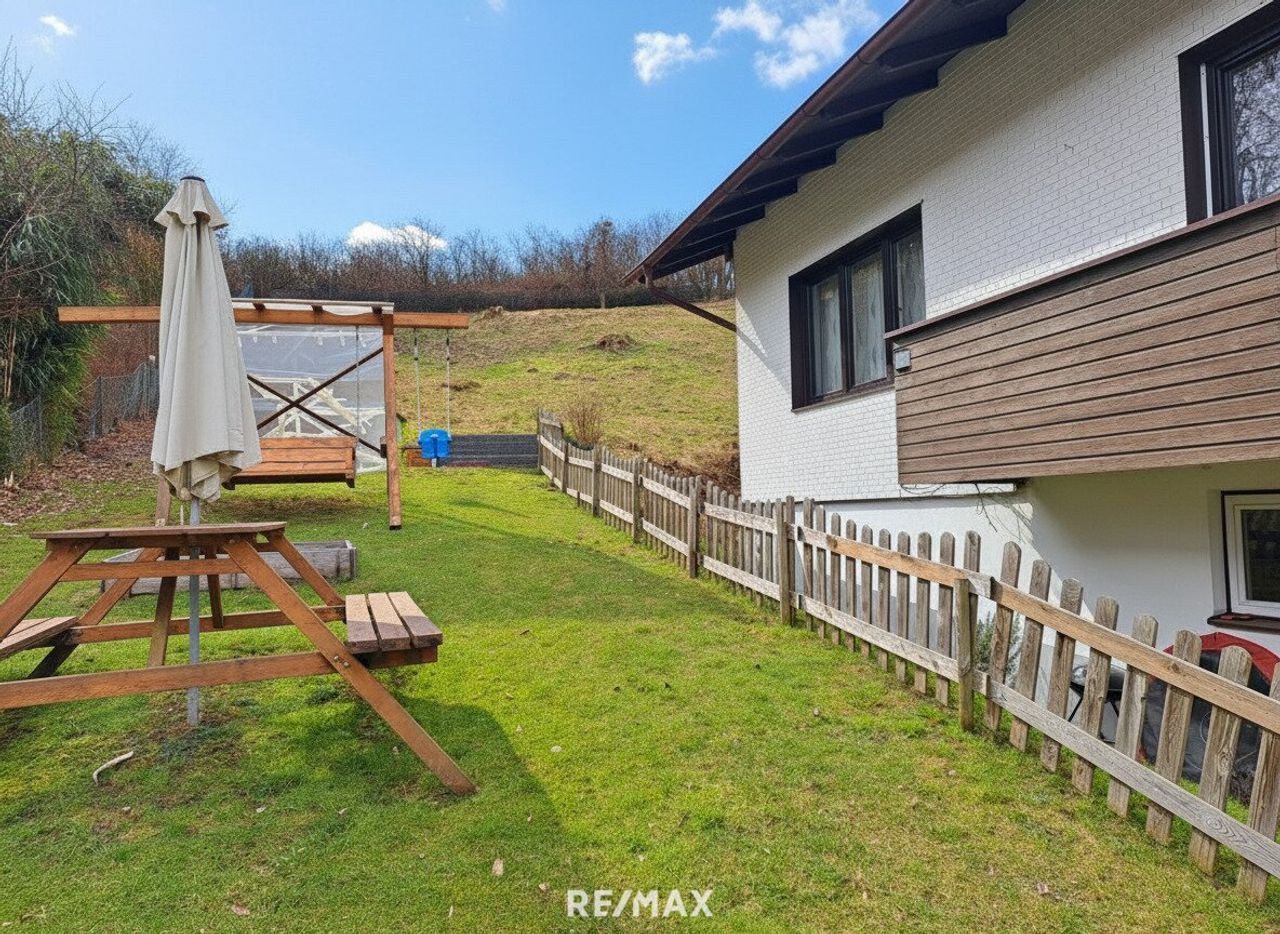 Das im Jahr 1978 errichtete Haus in massiv Bauweise befindet sich auf einem großzügigen Grundstück mit ca. 1.200 m² und bietet vielseitige Nutzungsmöglichkeiten – ideal für Familien, Mehrgenerationenwohnen oder Wohnen und Arbeiten unter einem Dach.