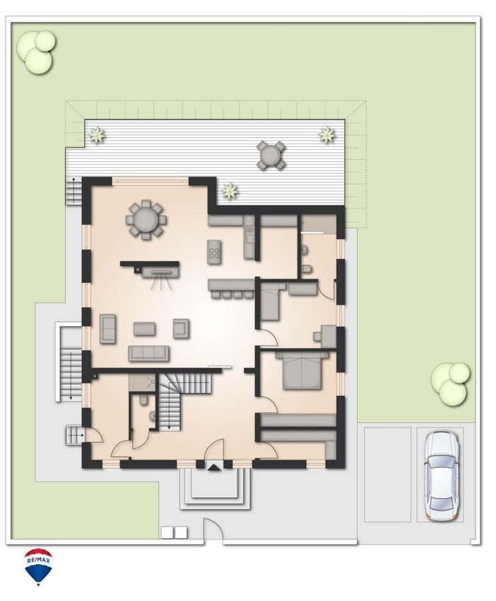 Großzügige Terrasse: Perfekt für entspannte Stunden im Freien oder gesellige Abende mit Familie und Freunden.