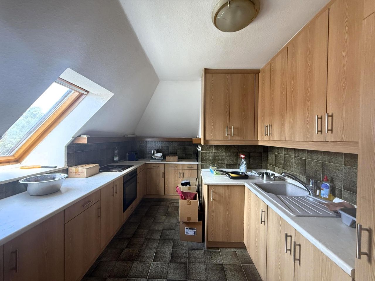 Auch das Dachgeschoss bildet eine eigenständige, weitere ( zweite ) Wohneinheit, eigentlich hat dieses Einliegerwohnungsqualität: eigene Küche, Schlafzimmer, ein aus dem Baujahr des Hauses noch stammendes Bad jedoch ebenfalls mit Toilette im eigenen Raum hat, eignet sich auch das Dachgeschoss perfekt als eigenständige Wohneinheit, am besten als Einliegerwohnung.
