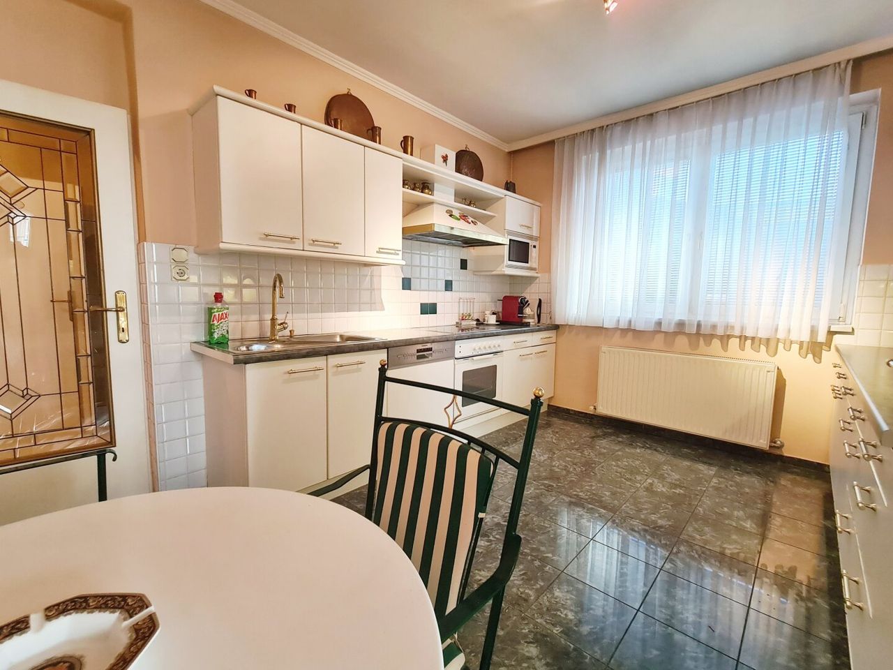 Küche; 14,70m² verfließt, Einbauküche mit sämtlichen Geräte, kl. Eßplatz
