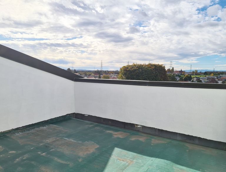 8m² Dachterrasse Fernblick Zugang vom Spitz Dachboden(zu niedrig für Dachausbau aber aufrecht begehbar komplett isoliert),Dachbodenzugang vom Vorzimmer Dachbodenluke mit ausziehbarer Treppe