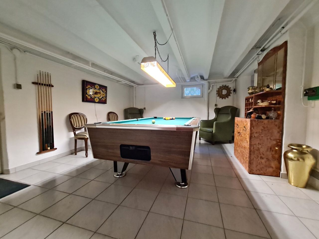 Billardraum:28.61m²verfließt, Fenster mit Sauna für 3Personen und Wirtschaftsraum WM mit WC und Dusche,Fenster