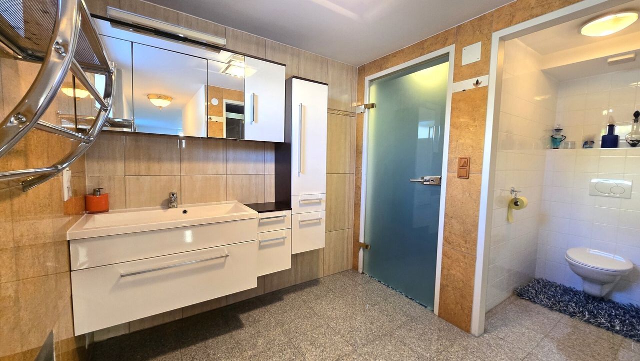 - beheizter Keller mit rund 83,24 m²: Vorraum, Zimmer mit Ausgang in den Garten, Wohnküche, Badezimmer mit Dusche und WC, Sauna, Hauswirtschafts- Technikraum mit Waschmaschinenanschluss