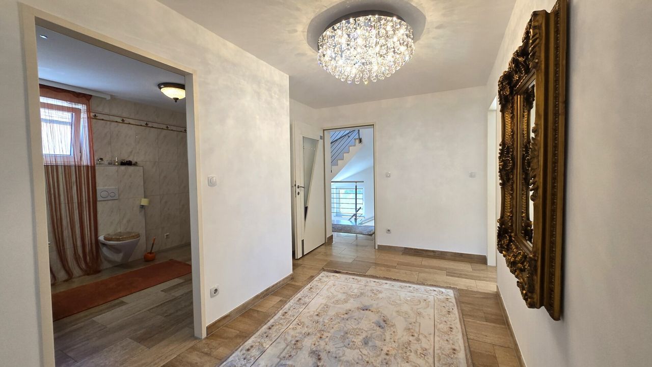 Besagtes Haus teilt sich in Erdgeschoß, Obergeschoß, Dachgeschoß und (Wohn)Kellergeschoß. Über wenige Stufen gelangen Sie ins Erdgeschoß. Im Vorraum stehend befinden sich rechterhand ein Abstellraum und ein separates WC. Weiters steht Ihnen ein großzügiger und offener Wohnbereich inkl. moderner Küche zur Verfügung. Von hier aus gelangen Sie auf die Terrasse, welche Ihnen eine herrliche Aussicht auf den liebevoll gepflegten Garten und das Pool ermöglicht.