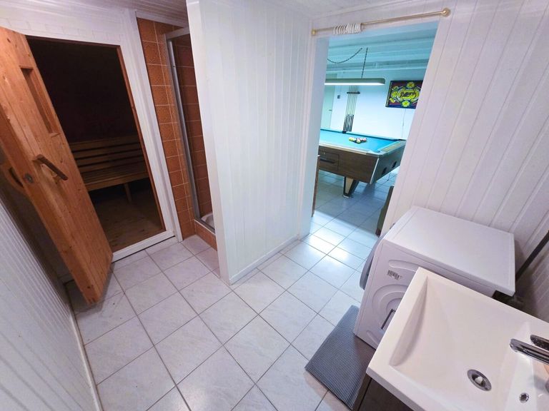 Billardraum:28.61m²verfließt, Fenster mit Sauna für 3Personen und Wirtschaftsraum WM mit WC und Dusche,Fenster