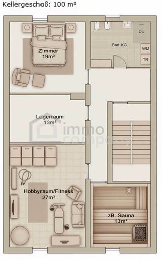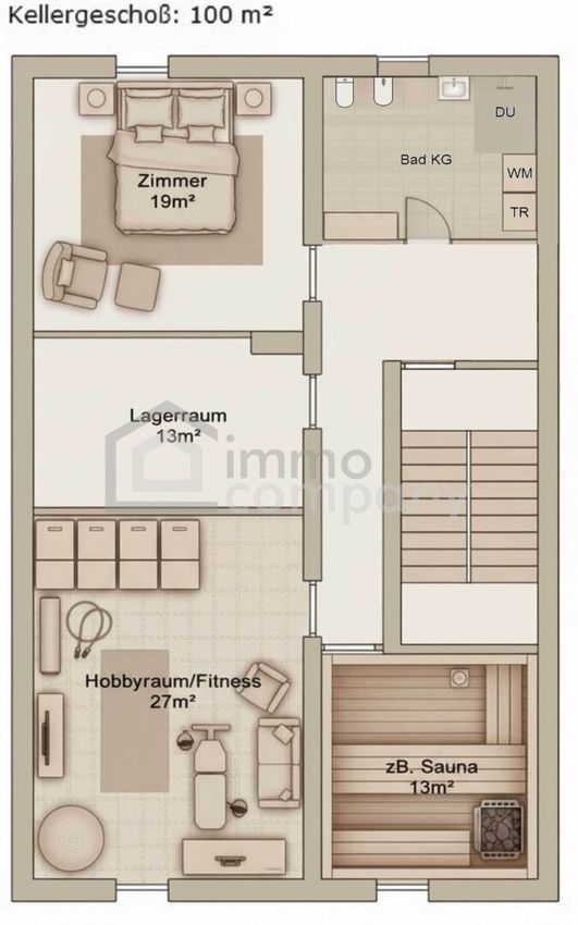 - Keller: 3-4 Zimmer (Sauna, Fitnessraum, Gästezimmer) und ein weiteres Bad
