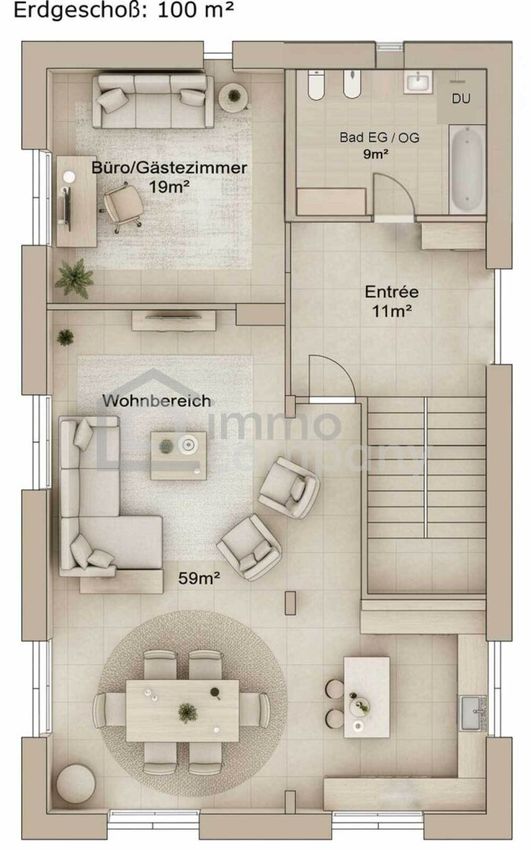 Großzügige Fensterfronten sorgen für ein helles und freundliches Ambiente, während die durchdachte Raumaufteilung Komfort und Funktionalität bietet.
