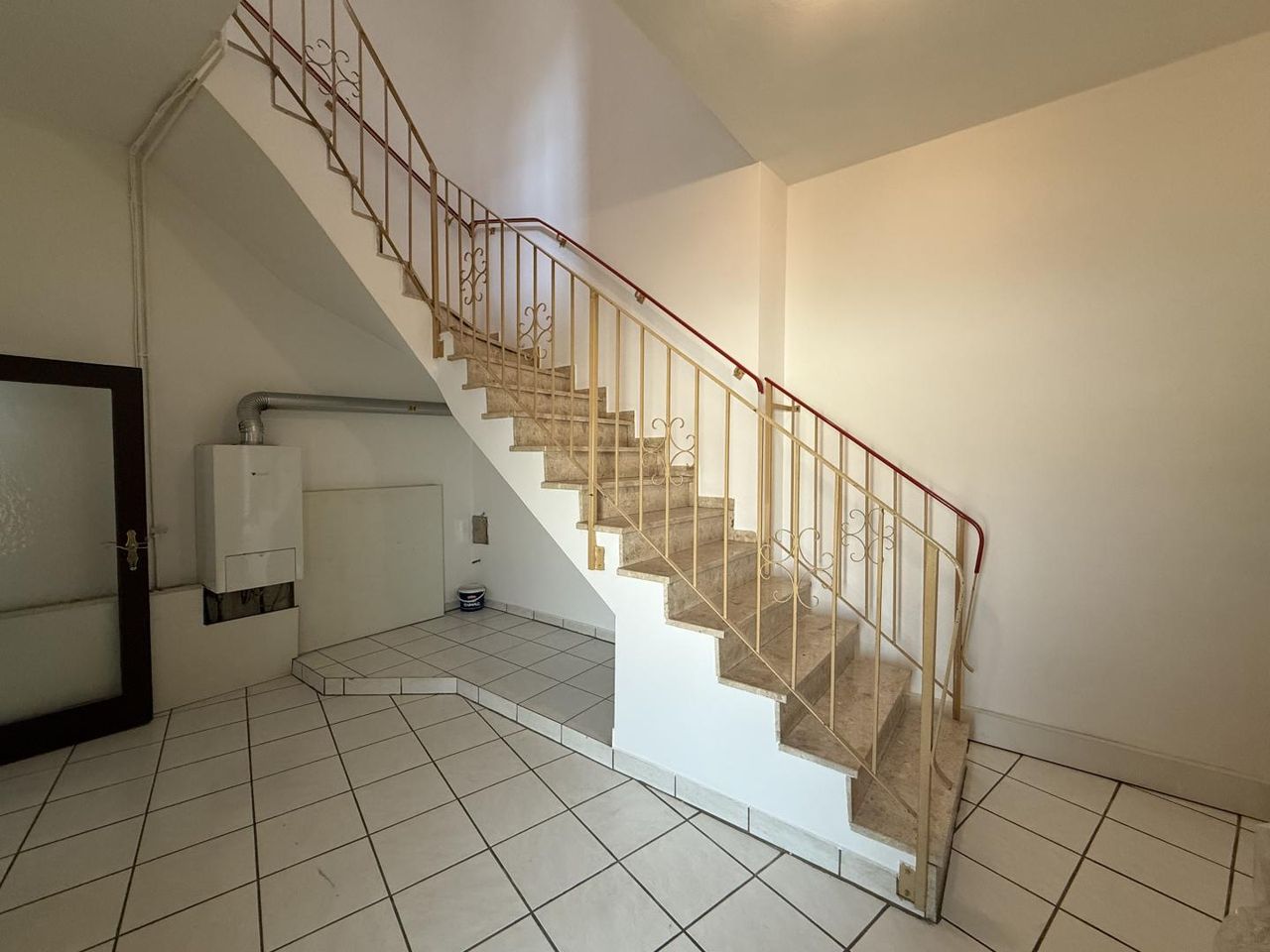 Beheizung und Warmwasseraufbereitung erfolgt im Erdgeschoß mittels Gastherme, die Heizung im Obergeschoß mittels Elektroheizkörper.