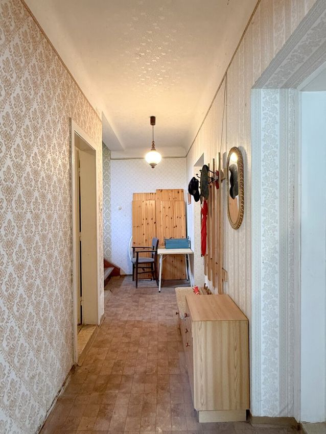 Das Haus steht seit einiger Zeit leer, der Zustand hat sich dadurch leider nicht verbessert – im Gegenteil. Ein schweres Unwetter hat vor einiger Zeit dem Gebäude zugesetzt; vor allem im Stiegenhaus sind die Spuren inzwischen deutlich zu sehen. Wer das Haus wiederbeleben möchte, sollte also mit einer umfassenden Sanierung rechnen – oder gleich ganz neu planen.