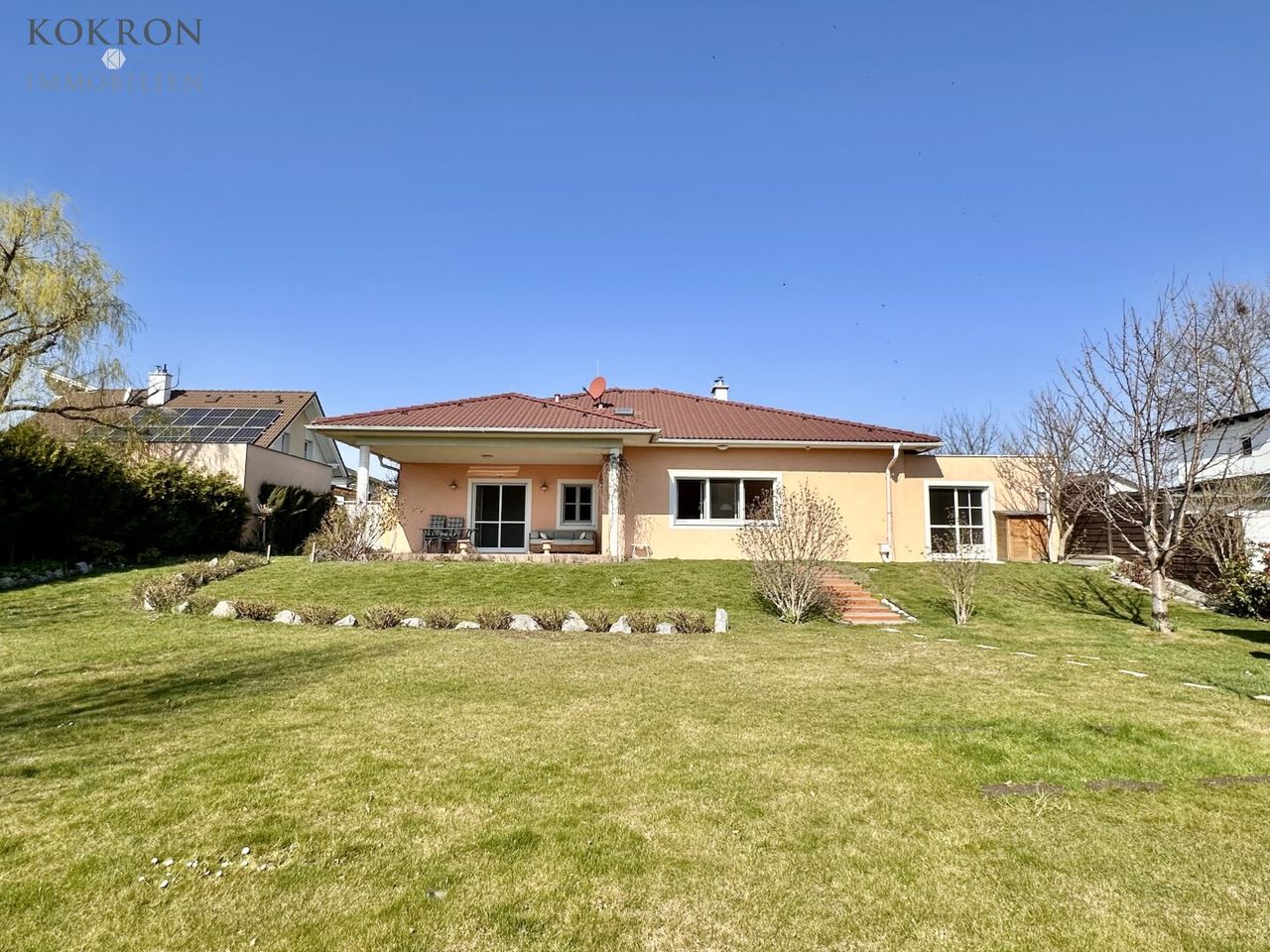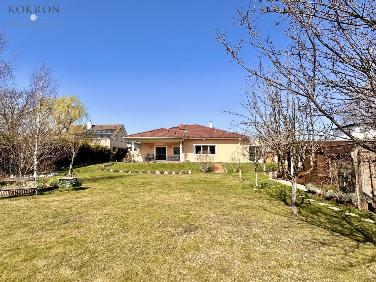 Ein neuwertiger Bungalow mit außergewöhnlichem Garten und Schwimmbiotop, hochwertiger Ausführung und ruhiger Lage nahe Wien. Ideal für anspruchsvolle Käufer, die das Besondere suchen und Wert auf Qualität, Ruhe und zeitlose Architektur legen.