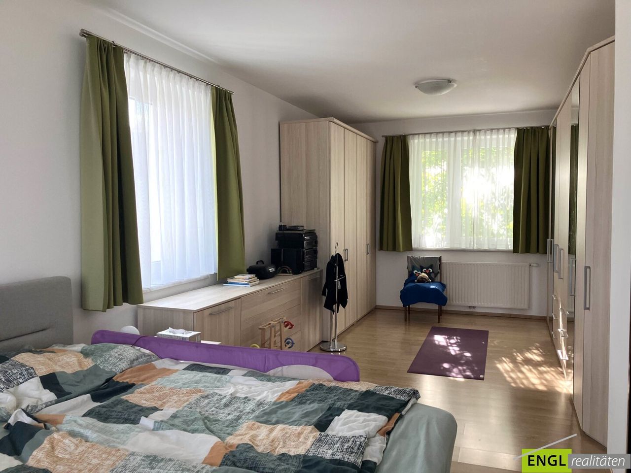 Durch die dreifache Verglasung der Fenster (inkl. Außenrollos und Fliegengitter) auf der Straßenseite sowie die zweifache Verglasung der Fenster (inkl. Außenrollos und Fliegengitter) zur Gartenseite wird ein angenehmes Wohnklima geschaffen. Der Lärmpegel ist als durchschnittlich einzustufen.