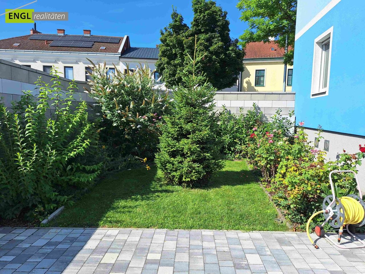 Ein besonderes Highlight ist der beheizbare Swimmingpool im hinteren Gartenbereich, inklusive Poolhaus und überdachter Terrasse, der Erholung und Freizeitspaß garantiert. Eine Gartenbewässerungsanlage sorgt zusätzlich für Komfort und erleichtert die Pflege der Außenanlage in den Sommermonaten.