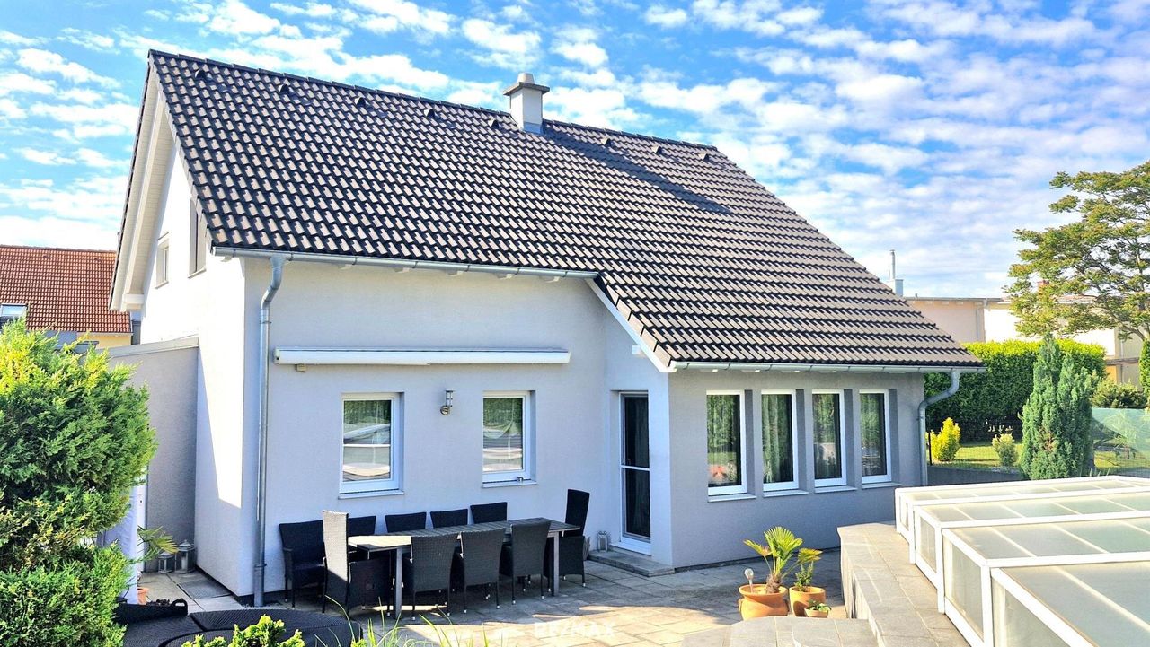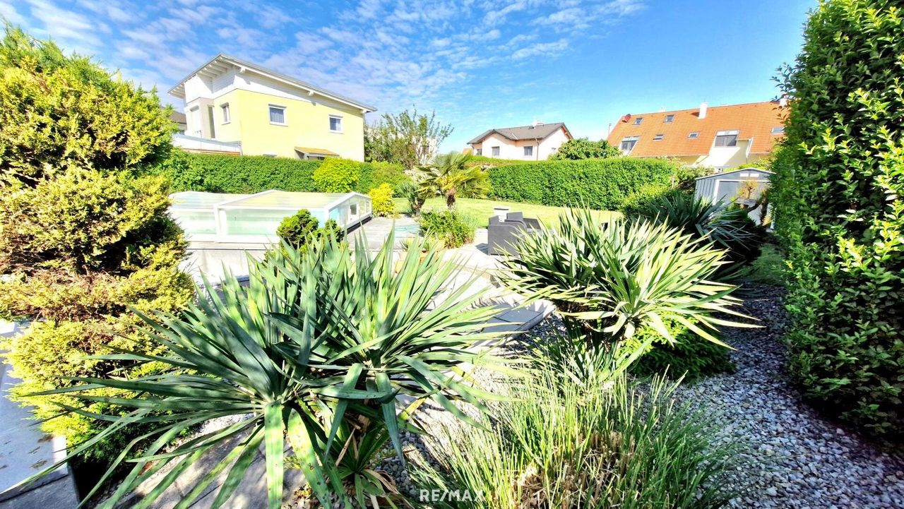 PALMEN, POOL und BARBEQUE ….. Hier im begehrten Gramatneusiedl haben Sie alle diese Möglichkeiten auf einmal. Bei diesem Objekt gibt es mehr als 5 Zimmer+ auf 3 Etagen. Zusätzlich eine Doppelgarage (ca. 60m²+) einen grossen Garten und natürlich auch eine riesige Terrasse, mit eigener seperater Grillstation und den Pool (mit Überdachung), mit ca. 6x4 Metern. Die Räumlichkeiten sind topaktuell ausgestattet und mit modernster Technik (Luft-Wärme Pumpe, Fussbodenheizung, ….), versehen. Ebenso finden Sie hier Voll-Wärmeschutzfassade, 3-fach verglaste Fenster und ein langlebiges Bramac Dach vor. Im Keller gibt es noch den Wellness Bereich, samt Bar. Angrenzend den Technikraum und eine eigene Waschküche....