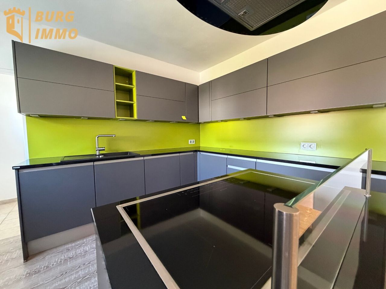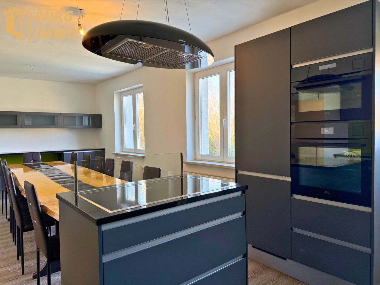 Die moderne Küche ist funktional und großzügig gestaltet und bietet viel Platz für gemeinsames Kochen und Zusammensein.