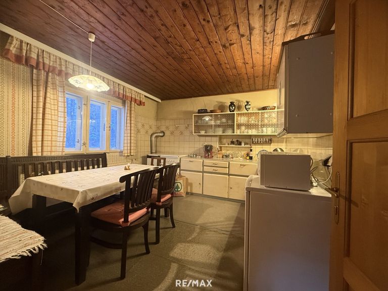 Mit rund 118,3 m² Wohnfläche überzeugt das Haus durch seine gemütliche, warme Atmosphäre im charakteristischen 80er-Jahre-Stil. Holz, Struktur und Substanz verleihen dem Gebäude einen authentischen, alpinen Charme.