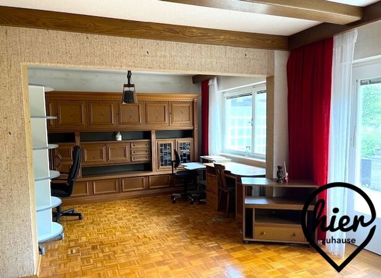 Das teilmöblierte Einfamilienhaus bietet ca. 120 m² Wohnfläche auf zwei Ebenen. Zudem ist es voll unterkellert (ca. 80 m² inkl. Garage), was u.a. viel Platz für Lagerung und Hobbys bedeutet.