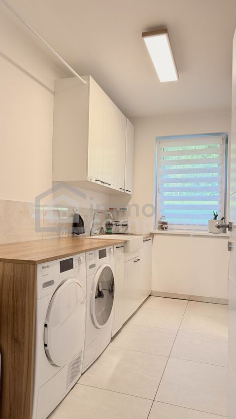 Im Erdgeschoss empfängt Sie ein stilvoller Eingangsbereich, von dem aus Sie direkt in den Wohntraum gelangen: ein großzügiges Wohnzimmer mit Essbereich und einer maßgefertigten DanKüche, ausgestattet mit luxuriösen Einbaugeräten. Hinter eleganten Türen verstecken sich eine zusätzliche Arbeitsküche und eine praktische Speisekammer – perfekt für den Alltag und die Zubereitung von Speisen für Gästeabende.