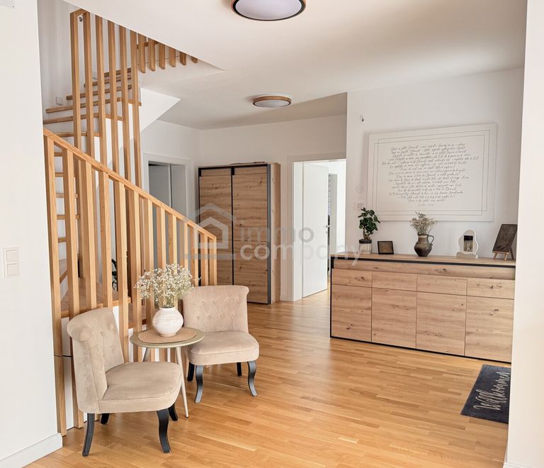 Schon beim Betreten spüren Sie die besondere Atmosphäre: Lichtdurchflutete Räume dank großer Fensterfronten, hochwertige Materialien und eine Architektur, die modernes Wohnen mit Geborgenheit vereint.