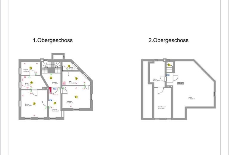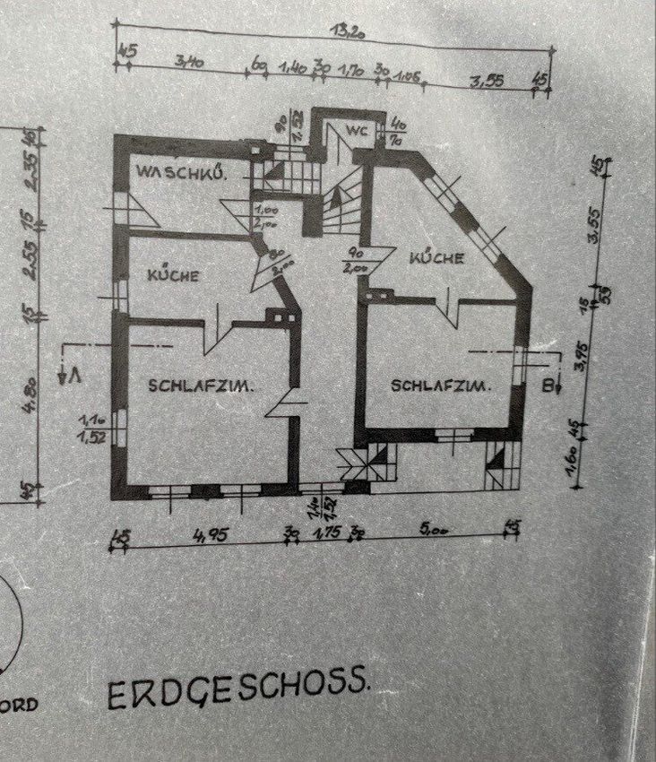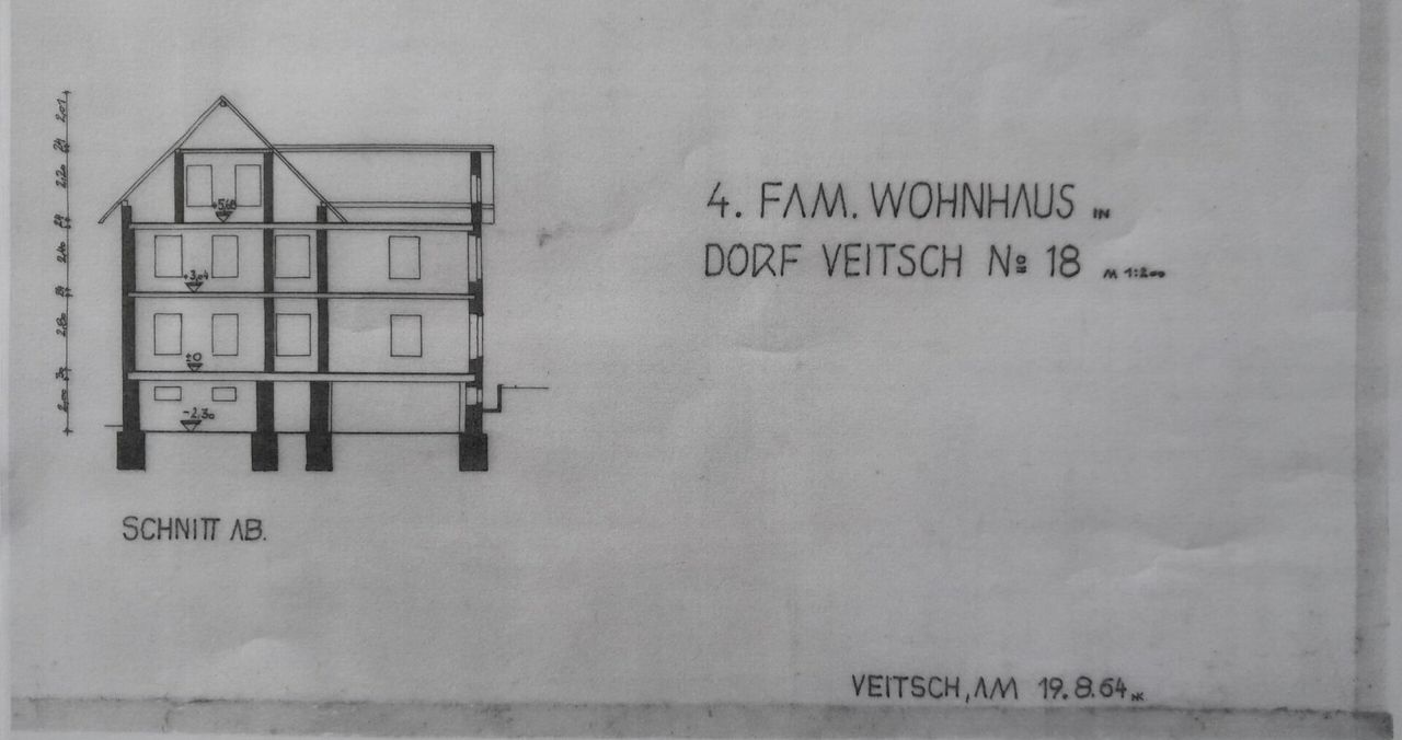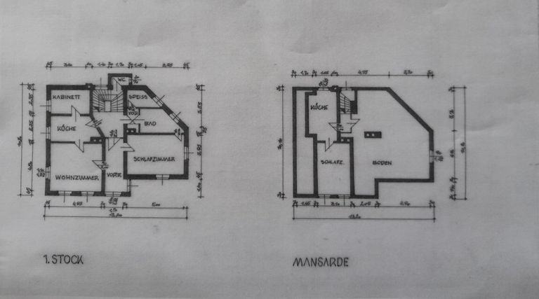 Das Haus erstreckt sich über Keller (ca. 54m²), Erdgeschoss (ca. 90 m²), Obergeschoss (ca. 85 m²) sowie einen Rohdachboden (ca. 70 m²). Die Flächenangaben basieren auf alten Skizzen und sind daher unverbindlich, ebenso wurde die ursprüngliche Raumaufteilung zwischenzeitlich verändert. Aktuell verfügt das Haus über zwei getrennte Eingänge, was die Aufteilung in mehrere Einheiten erleichtert und damit sowohl eine Mehrgenerationennutzung, WG als auch Vermietung oder eine Kombination aus Wohnen und Arbeiten ermöglicht.