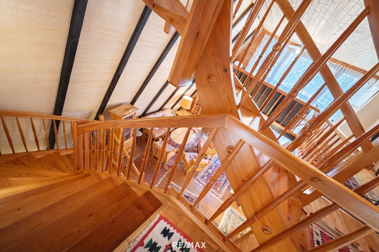 Die durchgehende Holzverkleidung im Innenbereich unterstreicht den naturnahen Charakter und schafft eine warme, einladende Wohnatmosphäre.