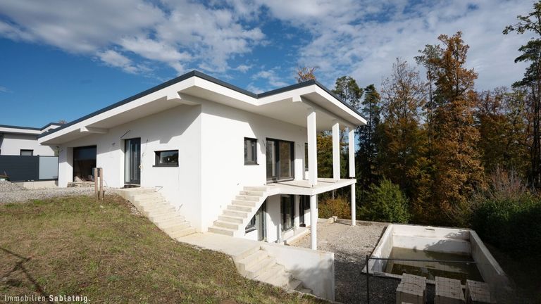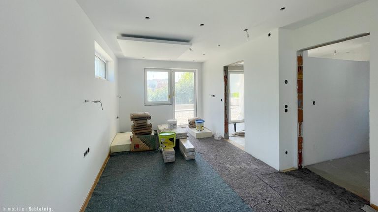 Das Haus ist nahezu fertiggestellt – es fehlen lediglich Fliesen (teilweise bereits fertiggestellt), Sanitärausstattung teilweise fertiggestellt, Innentüren sowie die Pooltechnik und Folie. Eine Teilbenützungsbewilligung liegt vor. Für die vollständige Benützungsbewilligung ist lediglich noch das Außengeländer fertigzustellen. Diese Ausführungsstufe bietet Ihnen die einmalige Gelegenheit, die finalen Details ganz nach Ihren Vorstellungen zu gestalten und das Haus ganz persönlich zu vollenden.