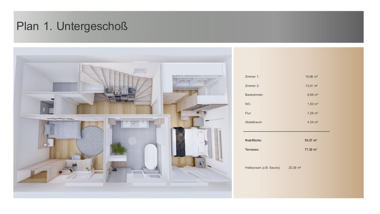 Im ersten Untergeschoss befindet sich der private Schlafbereich. Hier stehen...