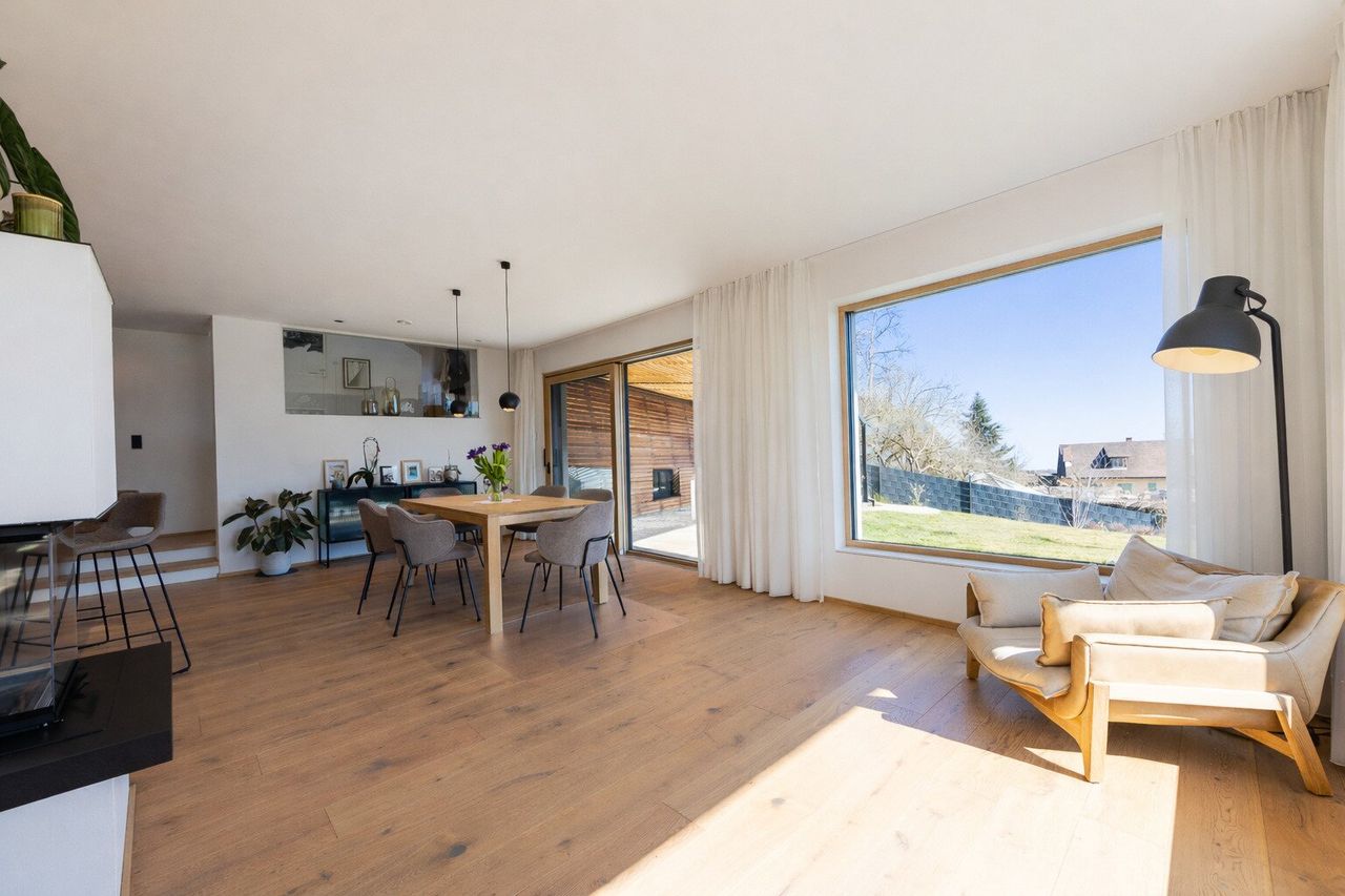 Auf einem großzügigen Grundstück in ruhiger Lage von St. Josef / Blumegg entstand ein Haus für Menschen, die bewusst wohnen möchten – naturnah, hochwertig und dennoch hervorragend angebunden.