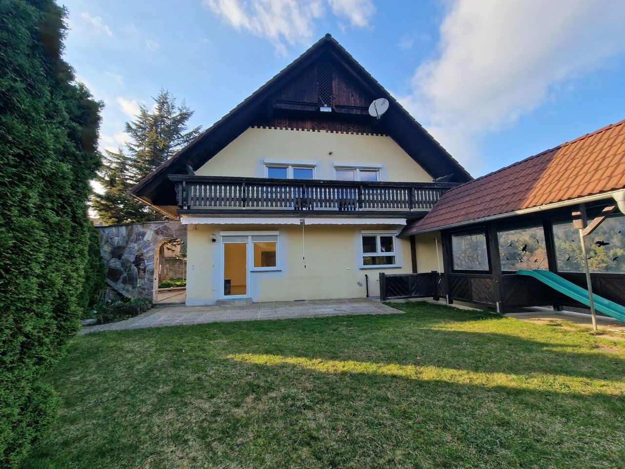 Der Balkon und der gemütliche Sitzgarten bieten ideale Möglichkeiten, um die Natur zu genießen und entspannte Stunden im Freien zu verbringen.
