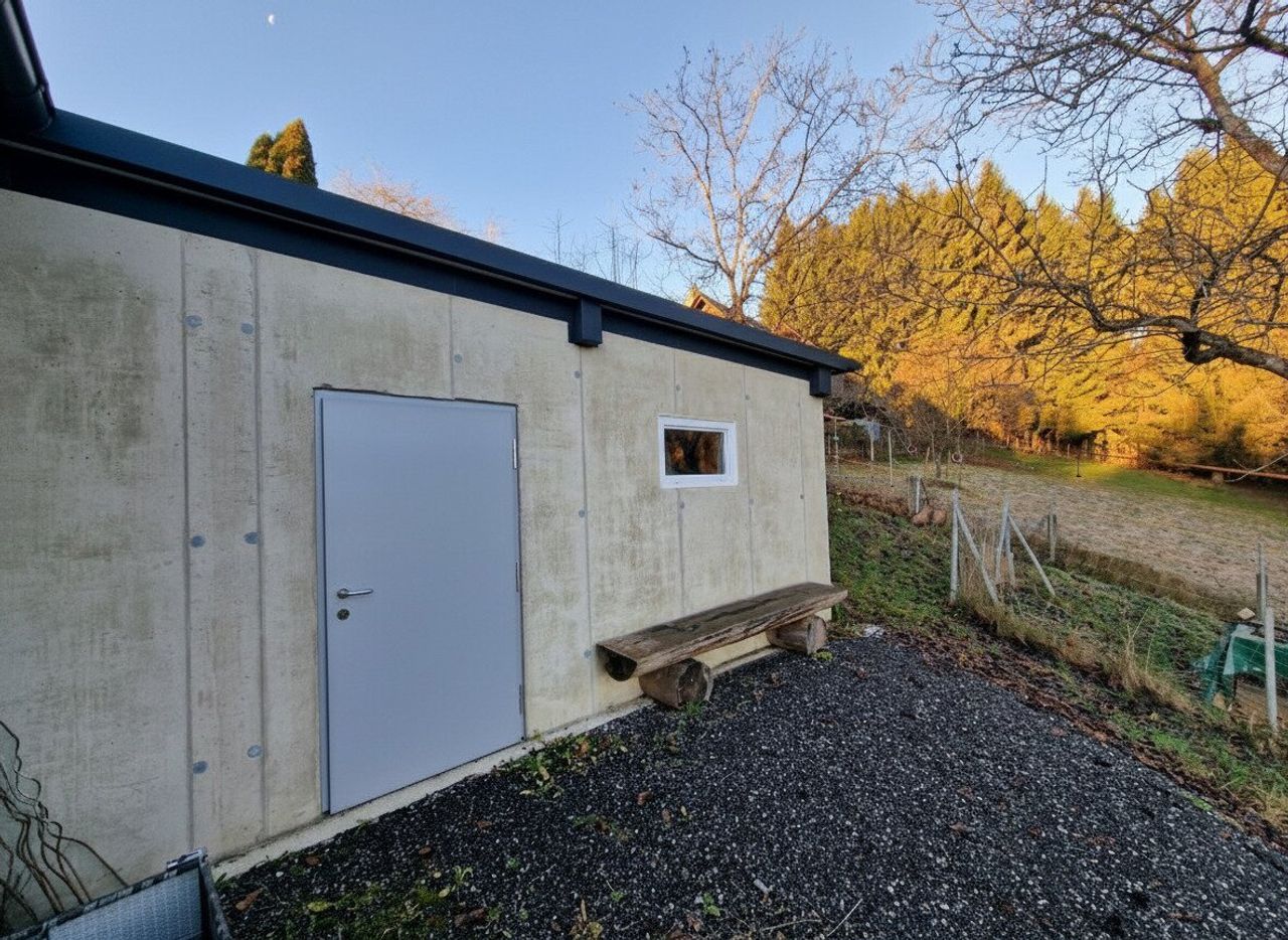Ein besonderes Highlight ist der große, ebenerdige Keller mit rund 110 m², der sich perfekt als Werkstätte, Hobbyraum, Lagerfläche oder sogar als Partyraum eignet. Zusätzlich steht eine neu errichtete 4-fach Garage mit ca. 68,43 m² und elektrischen Toren zur Verfügung – ideal für Autos, Maschinen oder zusätzliche Lagerflächen. Ein angrenzendes Holz- bzw. Heulager mit ca. 13,75 m² ergänzt die praktischen Nutzungsmöglichkeiten.
