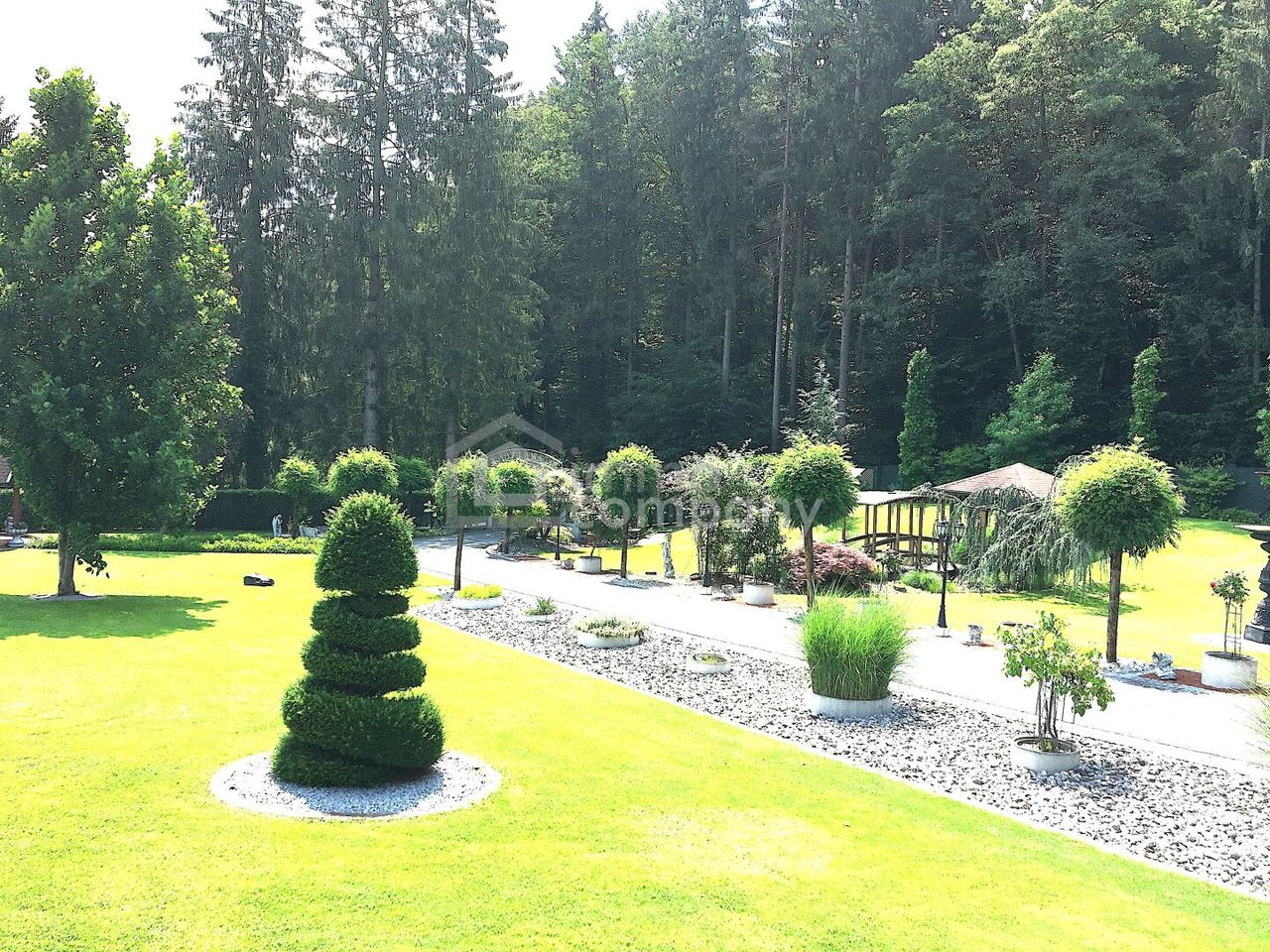 Auf einem weitläufigen Grundstück von über 7.000 m² und rund 3.250 m² eigener Wald, öffnet sich eine Welt der Stille, Geborgenheit und Natürlichkeit. Der Park-ähnlich angelegte Süd-Ost-Westgarten umrahmt das Haus mit altem Baumbestand und liebevoller Bepflanzung.