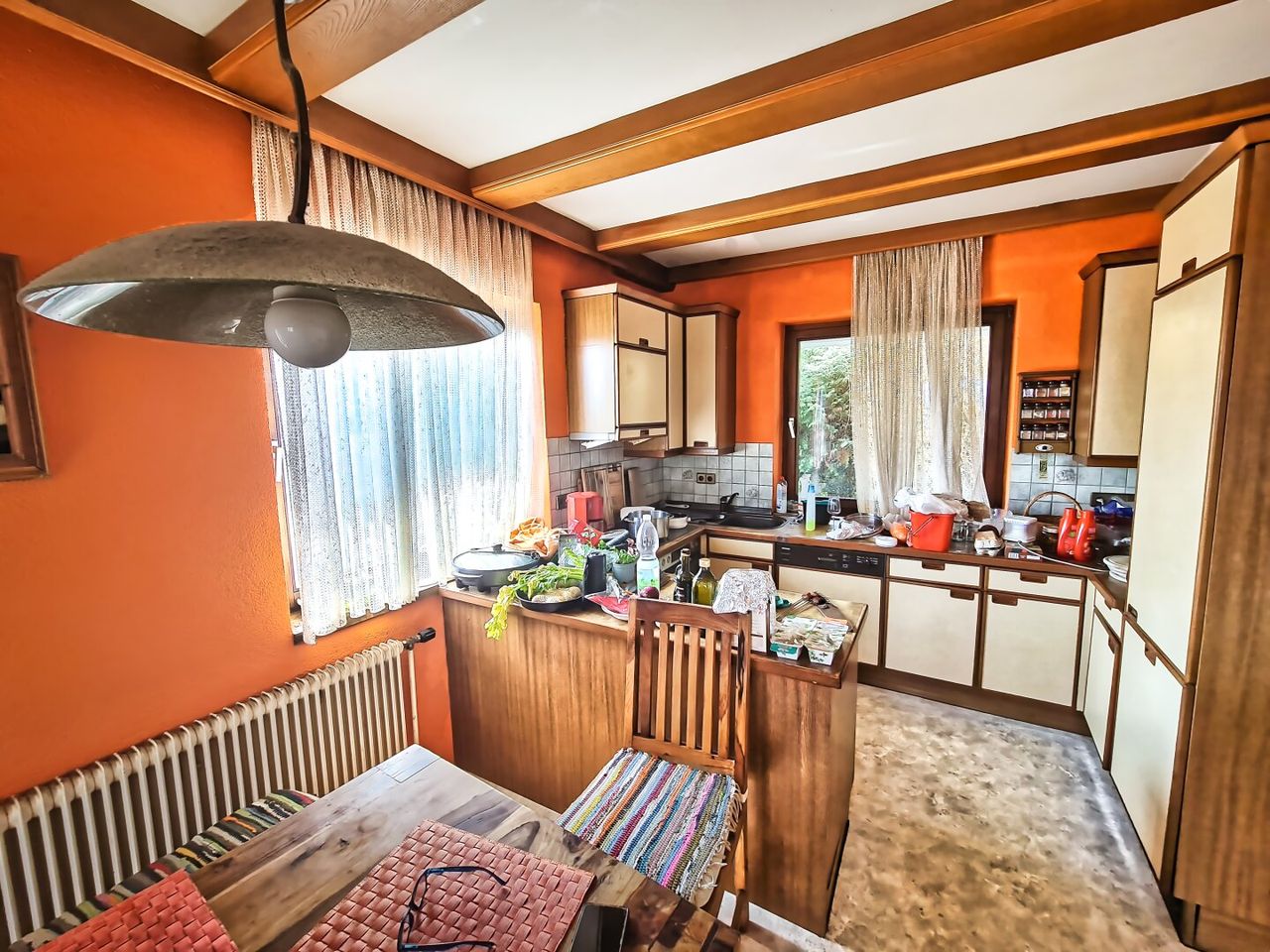 Die Heizung erfolgt zentral über Gas, ergänzt durch einen Kachelofen im Wohnzimmer, der Atmosphäre und Wärme vermittelt. Der Zustand des Hauses erfordert eine sorgfältige Sanierung, bietet dafür aber attraktives Potential zur Wertsteigerung durch moderne Haustechnik, Dämmung und zeitgemäße Bäder. Orientierungspunkte für Renovierungsbedarf liegen speziell in effizienter Wärme-, Klima- und Energieoptimierung.