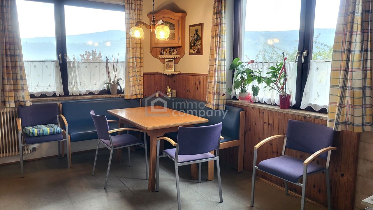 Das Haus bietet auf rund 1080 m² Grundfläche und einer Wohnnutzfläche von ca. 90 m² alles, was das Herz begehrt. Ein gemütliches Wohnzimmer mit Südwestbalkon lädt zum Verweilen ein, während die große Fensterfront den Blick über das Tal freigibt. Eine helle Küche mit Sitzecke, drei weitere Zimmer, ein modernes Bad mit bodentiefer Dusche sowie eine separate Toilette runden das Raumangebot ab. Der Vollkeller mit Gartenausgang bietet zusätzlichen Stauraum und praktische Nutzungsmöglichkeiten.