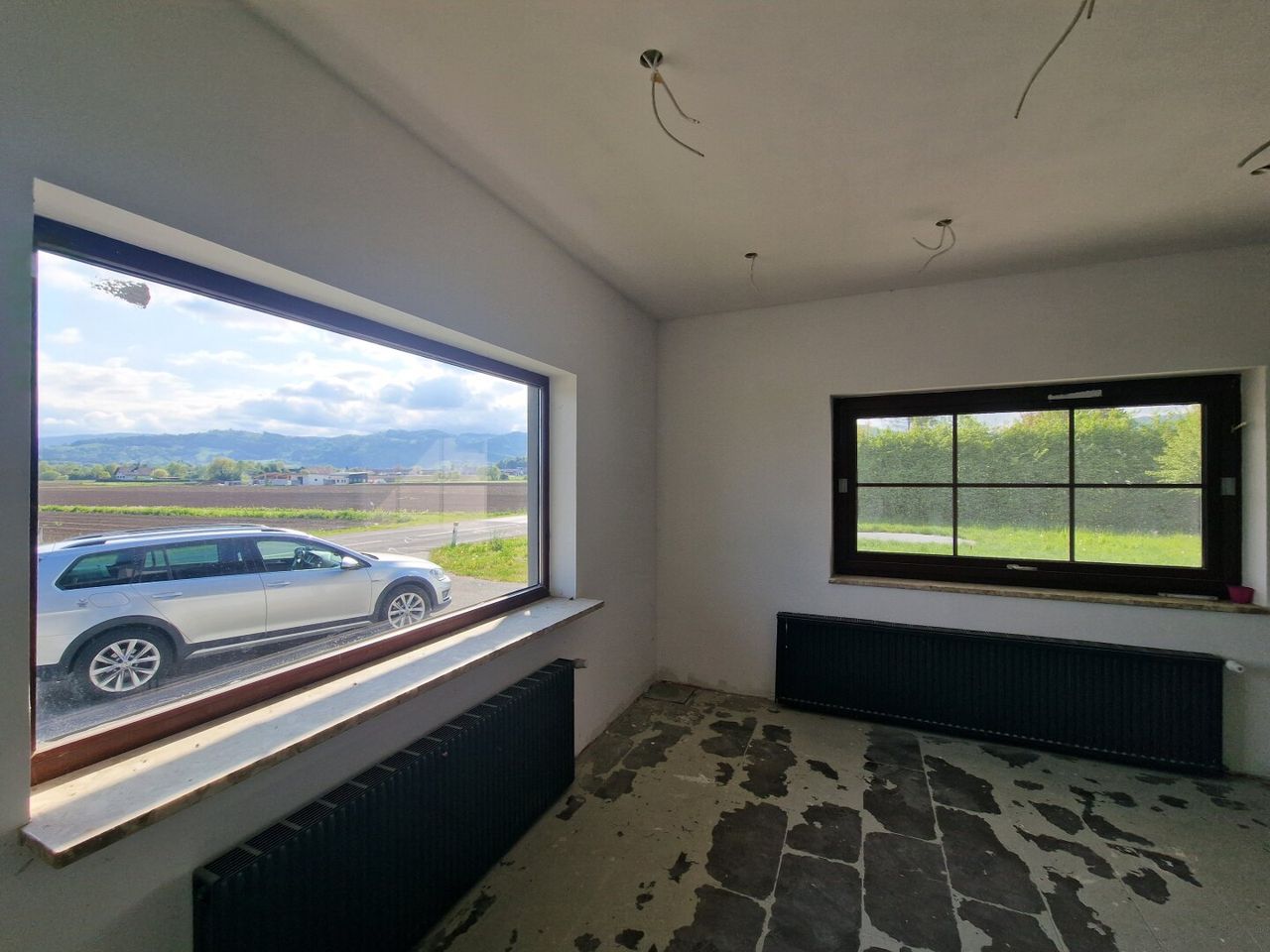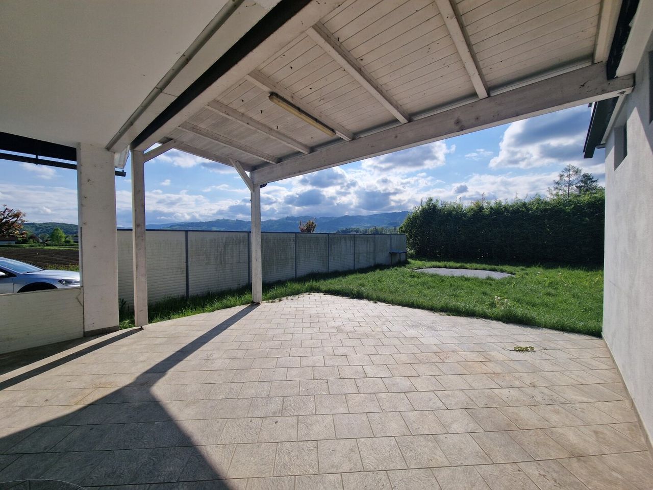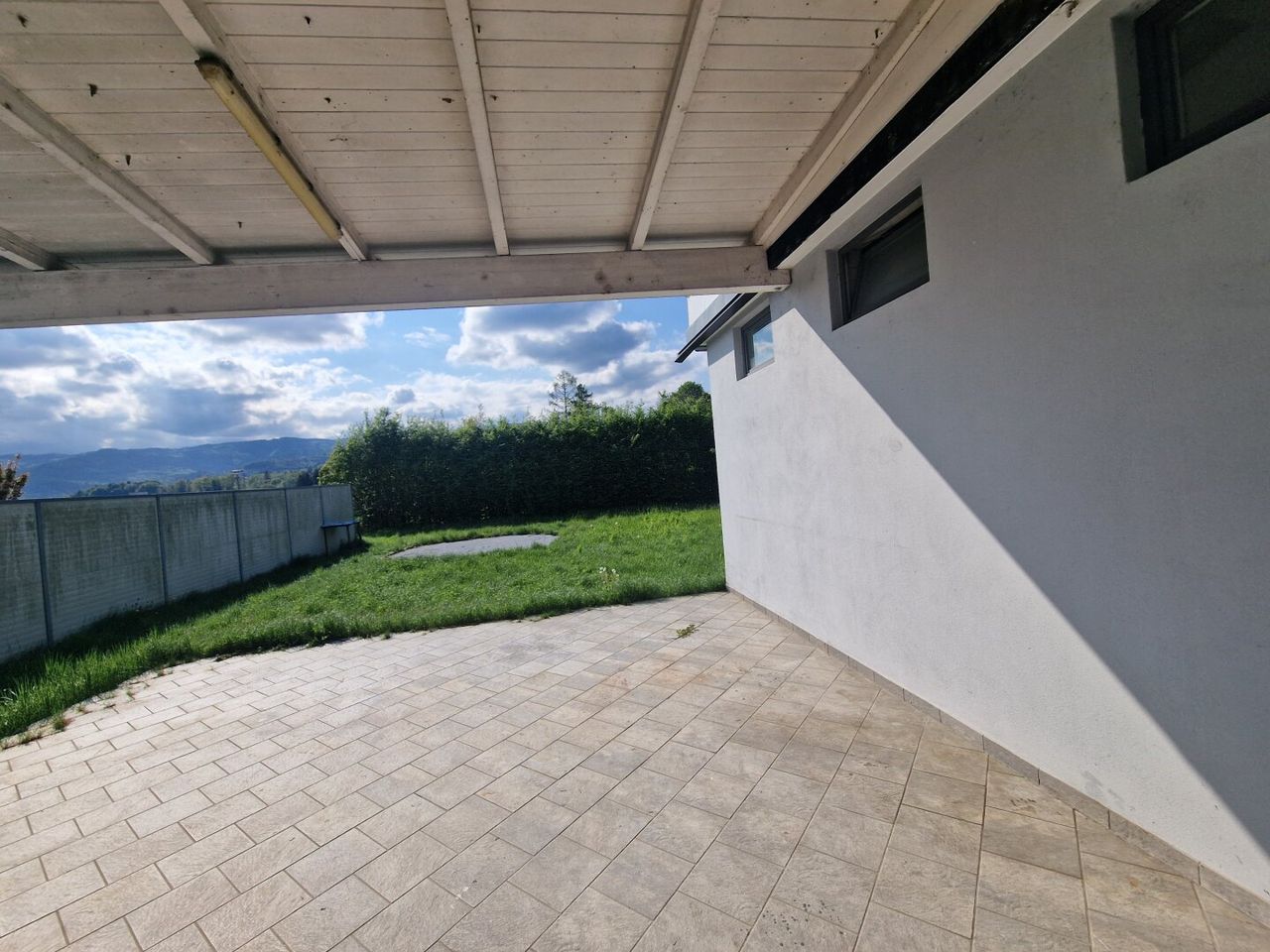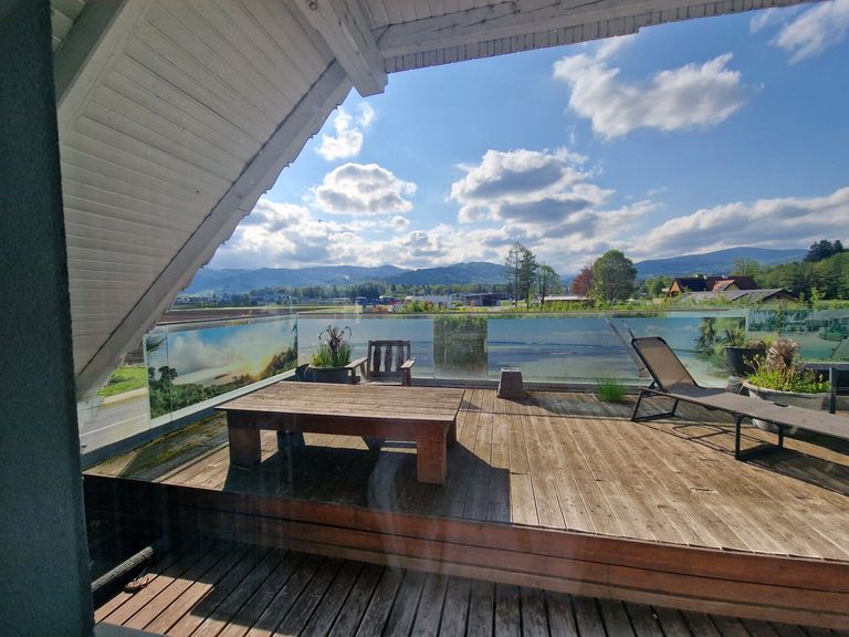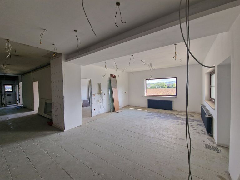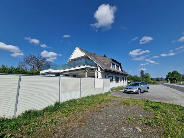Im 1. Obergeschoß des Gebäudes befindet sich eine großzügige und bewohnbare Wohnung mit ca.120m² und einer 37m² großen sonnigen Terrasse mit einem Weitblick auf die Koralpe.