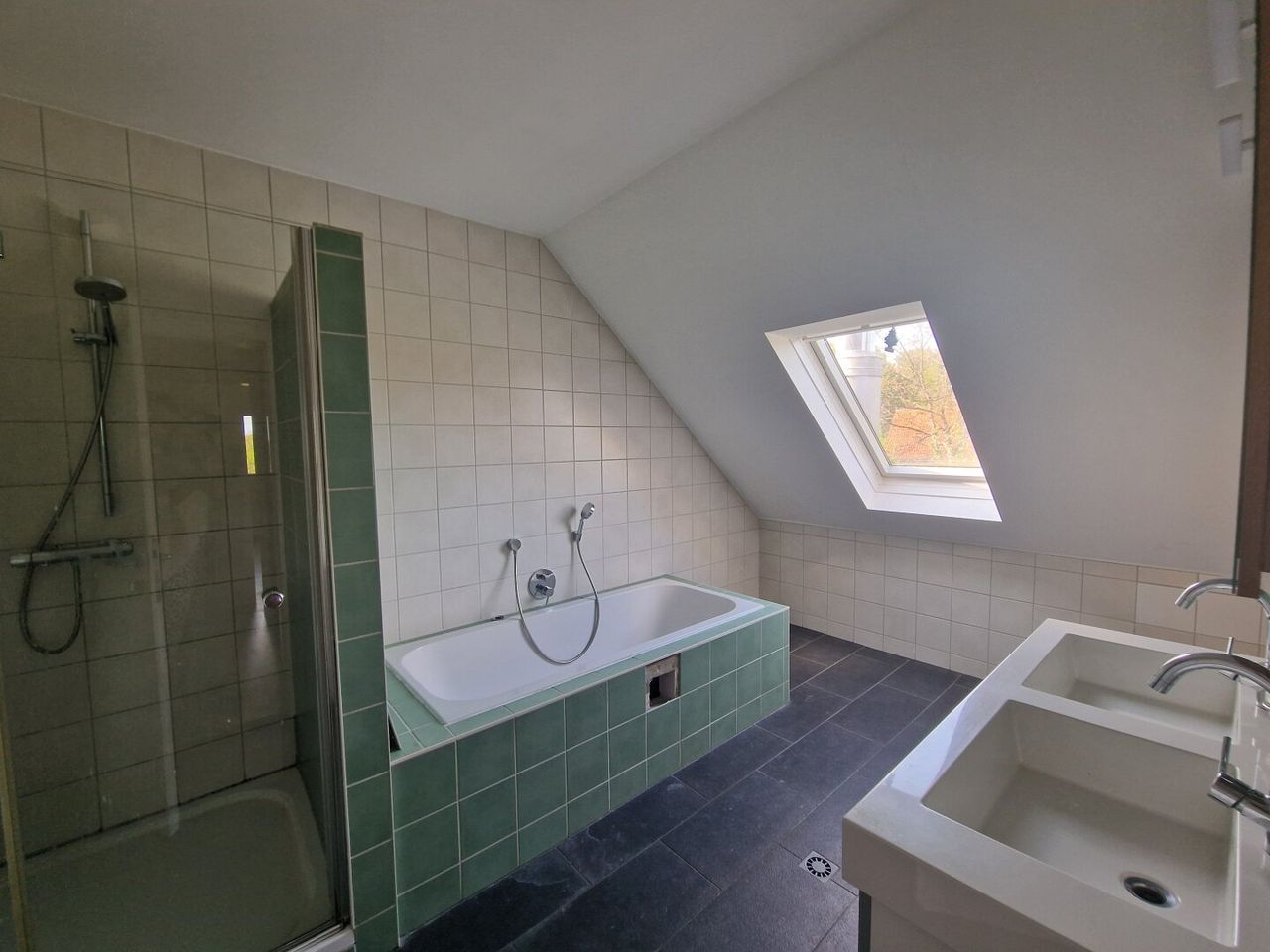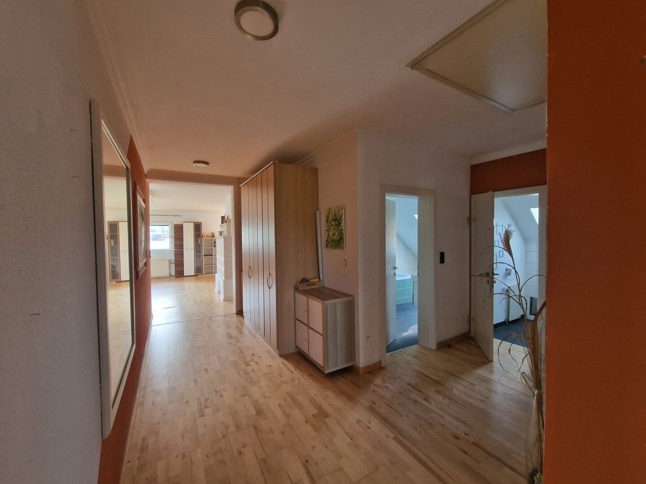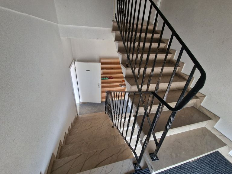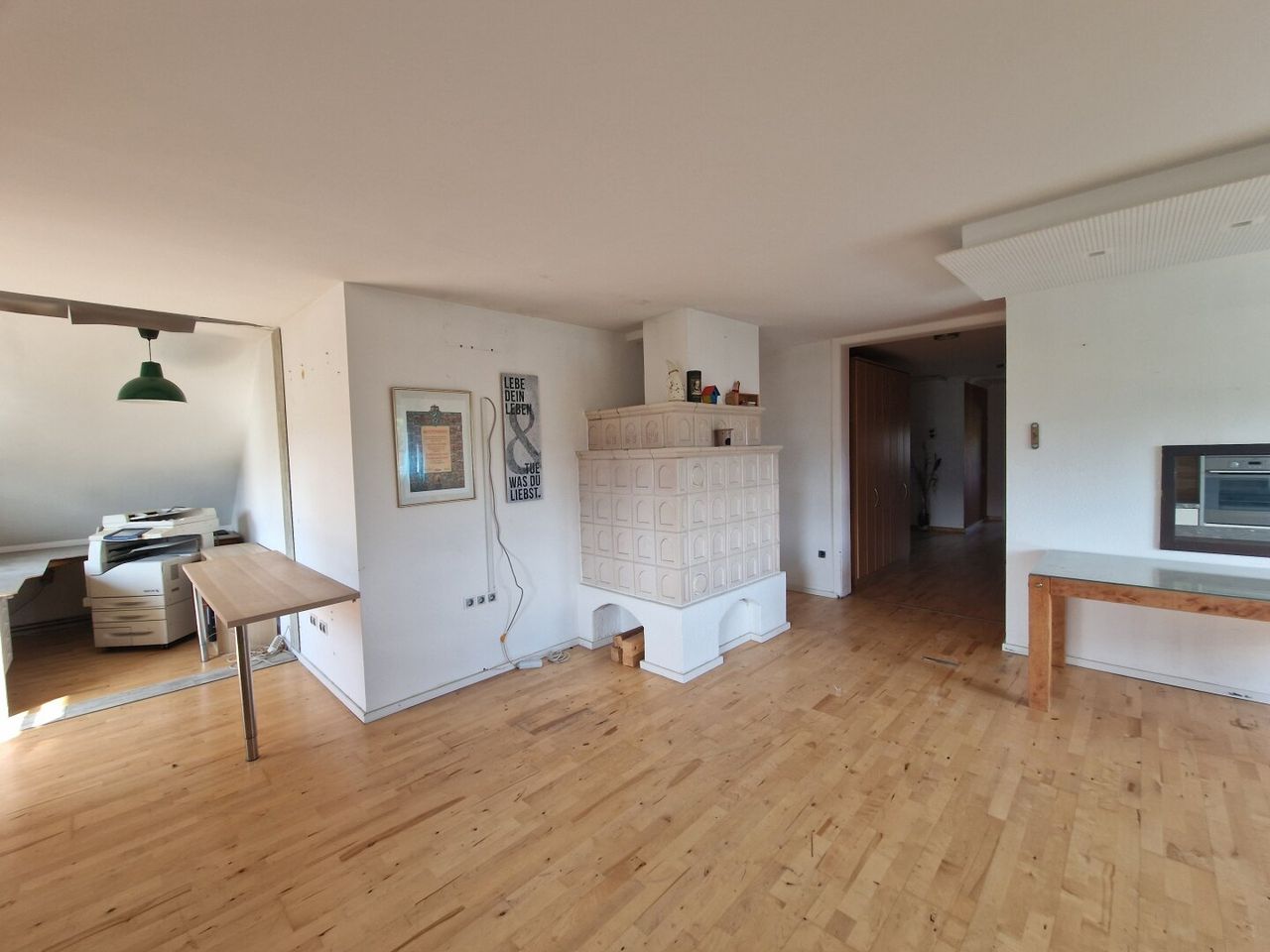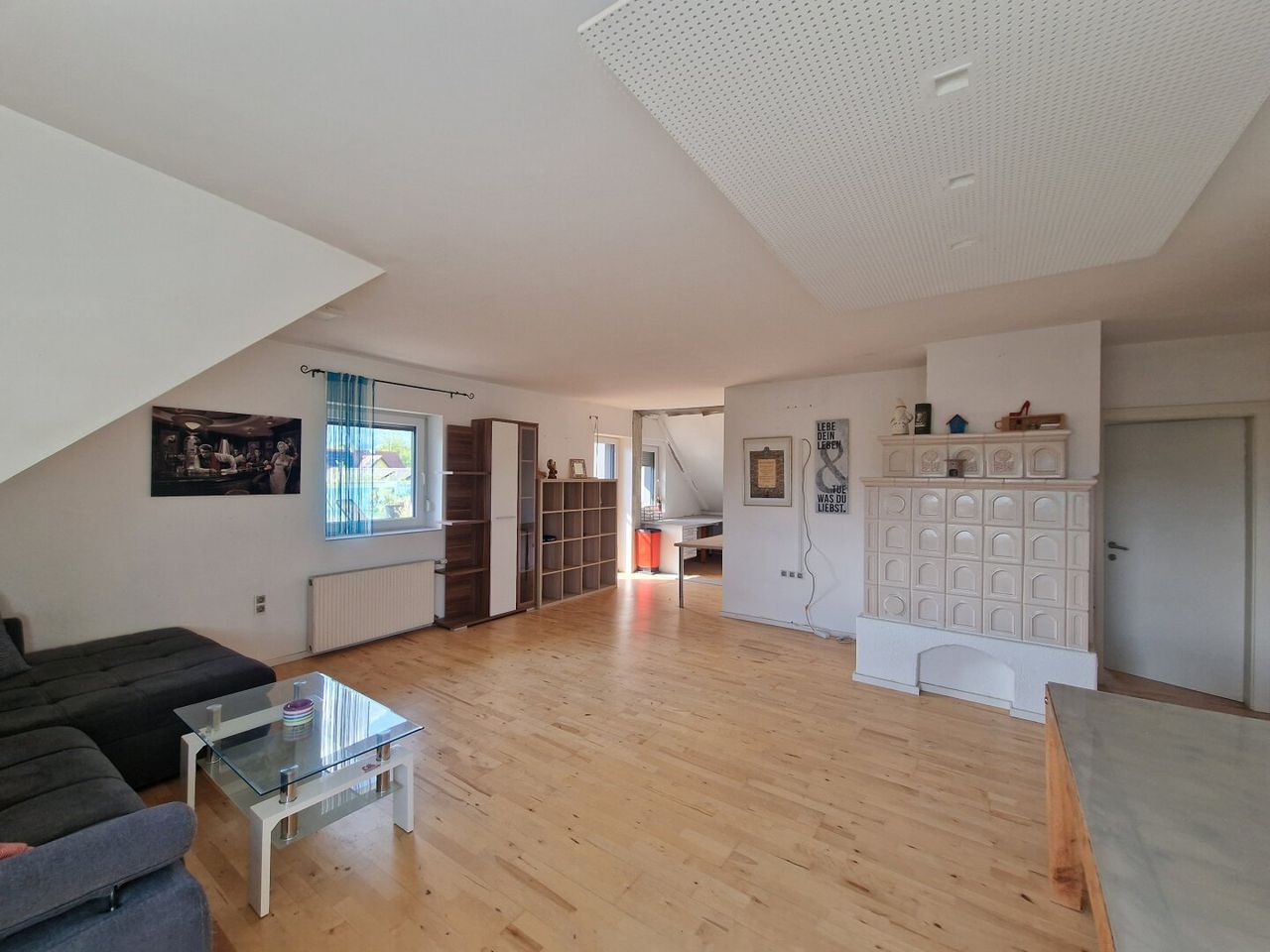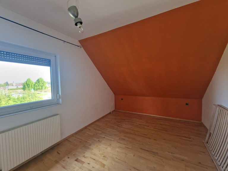 Die Wohnung im DG begeht man über das gemeinsame Stiegenhaus und sie ist ausgestattet mit einer Küche und einem Kachelofen und verschiedenen Einrichtungsgegenständen. Mit ein paar kleinen Renovierungsarbeiten, wäre diese Etage schnell bezugsbereit.