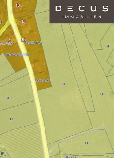 - Liegenschaft befindet sich zu einem Teil im Bauland (DO 0,2-0,5) und zum anderen Teil im Grünland
