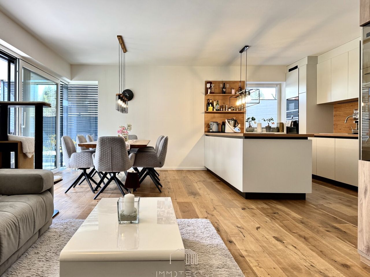 Heller Wohn-Koch-Essbereich mit moderner offener Küche