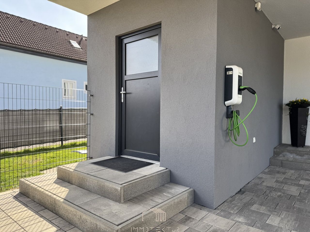 Doppelcarport mit E-Ladestation – zukunftssicher und komfortabel.