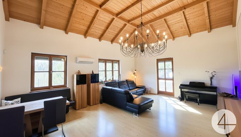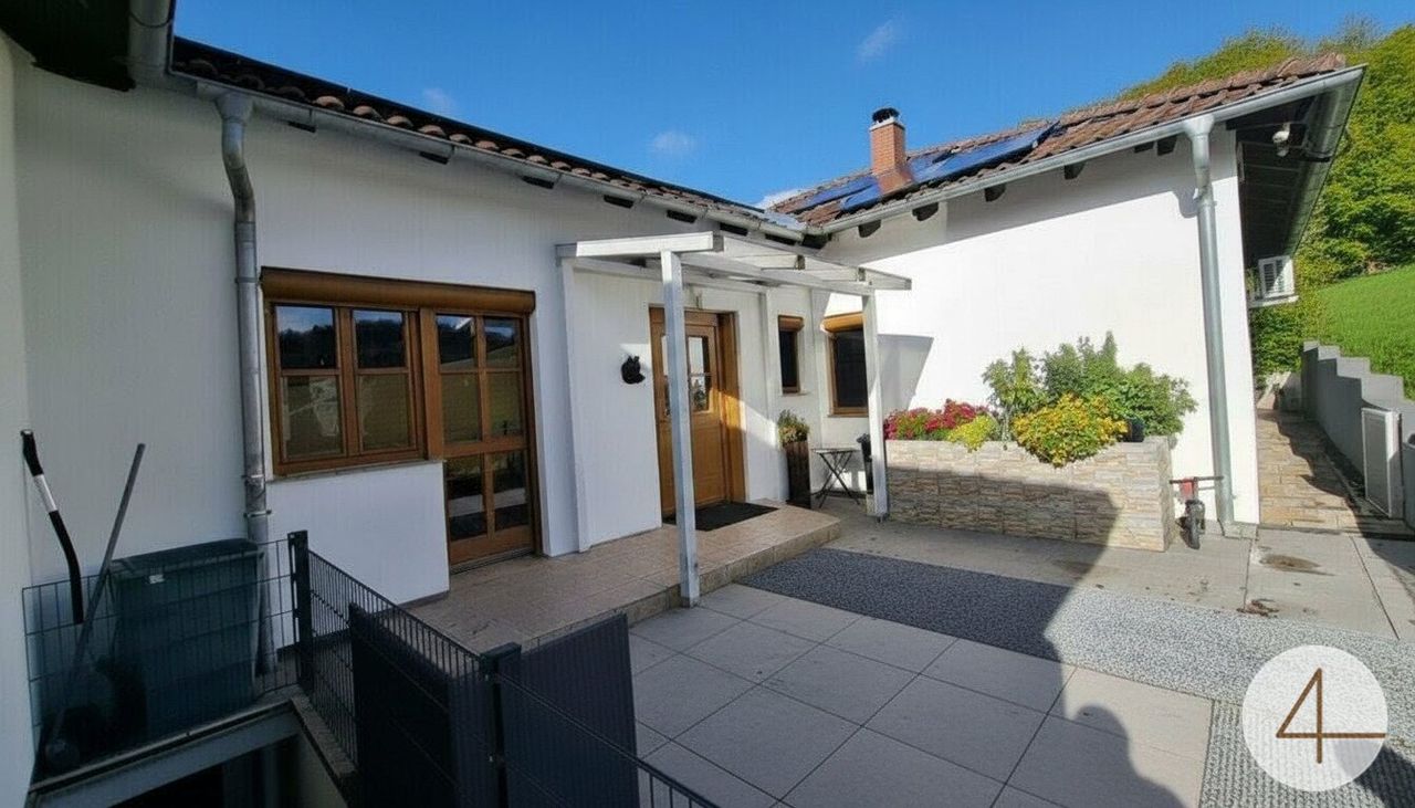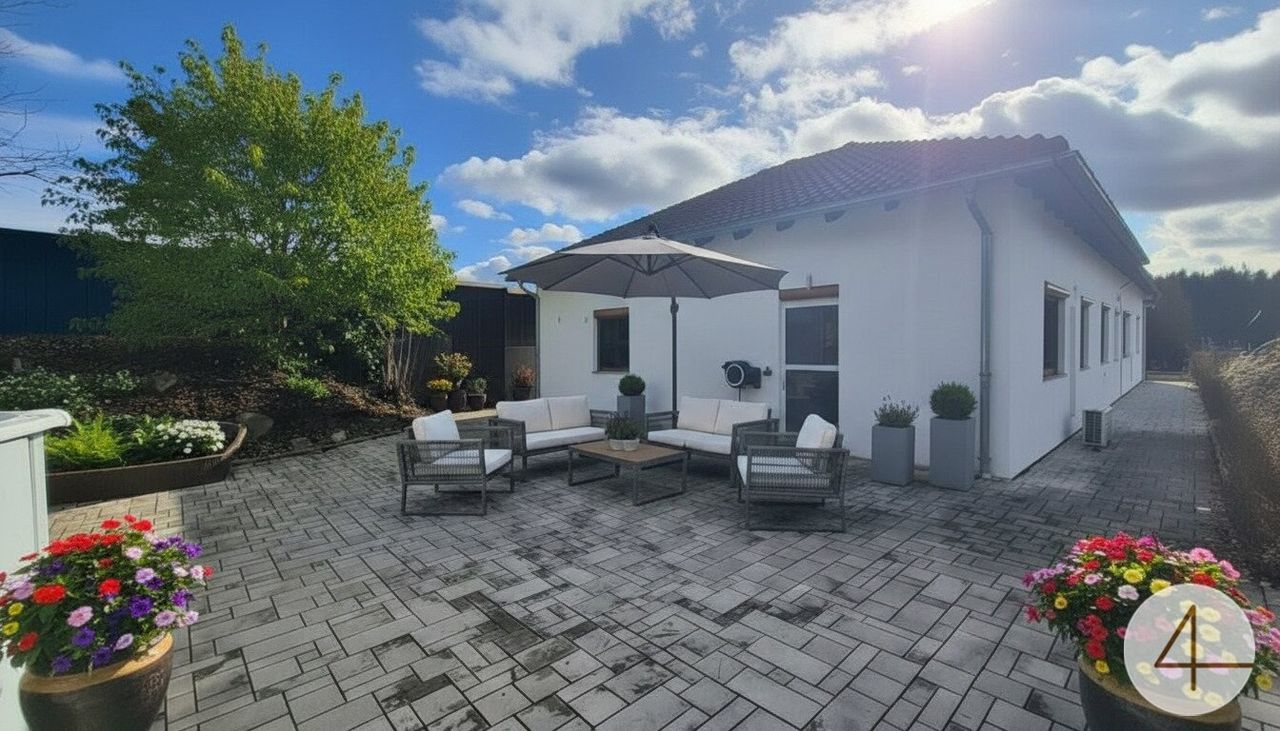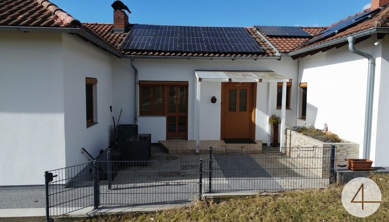 Bungalow teilunterkellert mit 140m² Wohnnutzfläche Pelletsheizung (2020 Neu eingebaut) mit 7 Tonnen Speicher / Verteilung teilweise über Fußboden Hauseigenes PV Kraftwerk großflächig mit Speicher (PV von Huawai) > ca. 12500kvh werden eingespeist, was eine jährliche Gutschrift von ca. EUR 1.000,- für Strom mit sich bringt. Brunnen und Kläranlage Smarthome > steuerbar sind Klimaanlagen, Rollläden, Licht, PV Anlage sowie...