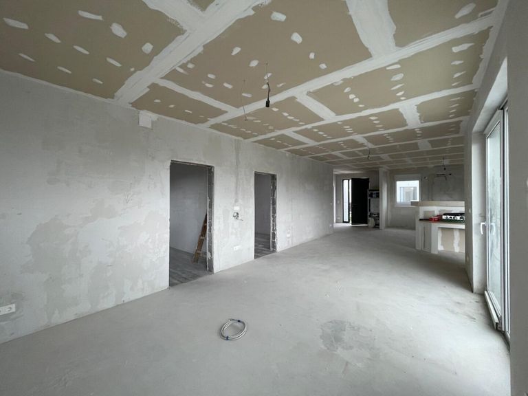 Wohnzimmer mit Essbereich und offenem Küchenbereich, 2 Schlafzimmer, Sanitäranlagen und einem Technikraum. Im Außenbereich finden Sie einen Garten (ca.200m²), eine Terrasse (ca.20m²) sowie 2 Autostellplätze.
