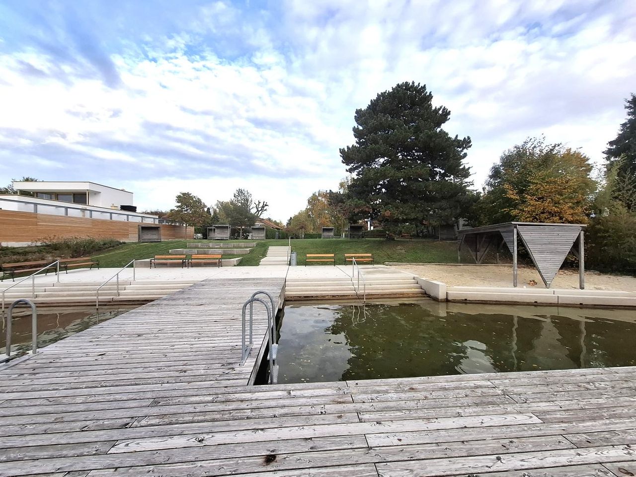Die Lage des Hauses ist ein weiteres Plus, es befindet sich am Ende einer kleinen Sackgasse in der Weekendsiedlung beim Neufelder See. Über den Garten gelangen Sie über Privatwege zu einem Uferabschnitt, der nicht zum öffentlichen Strandbad gehört!